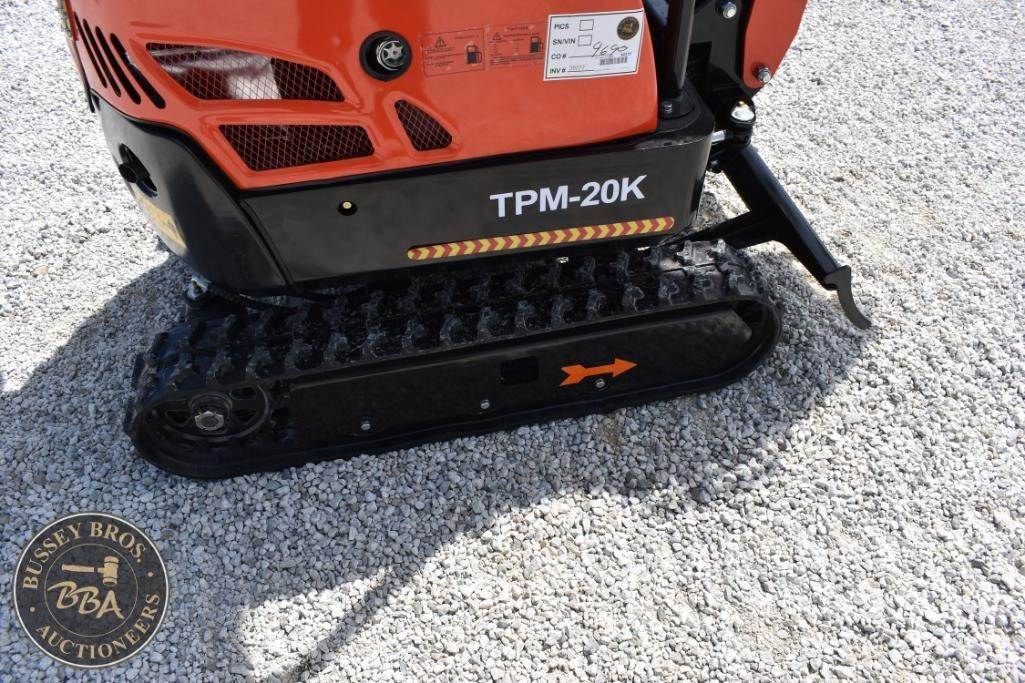 TPM-20K Mini Excavator, OROPS, Approx. 2,000 lbs Operating Weight, Diesel Fuel, Rubber Tracks, Approx. 20 HP. grading blade, hydraulic thumb, NEW/UNUSED