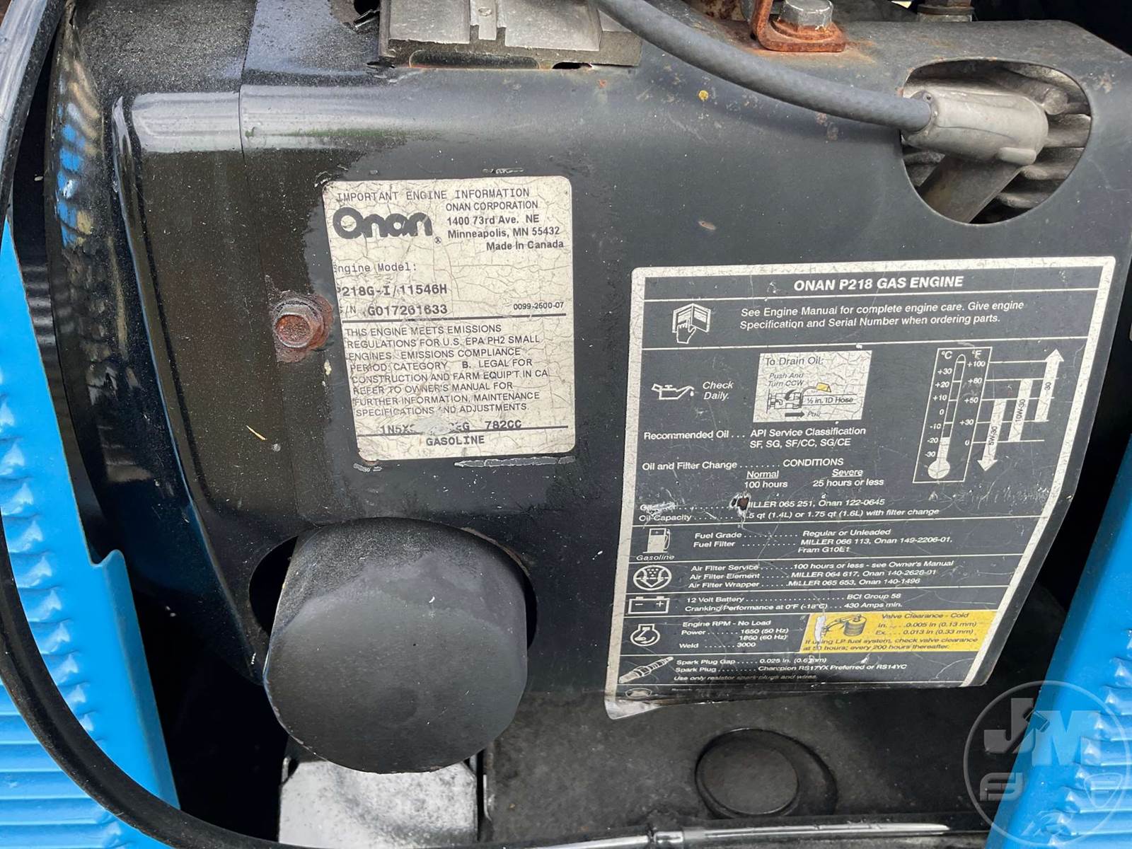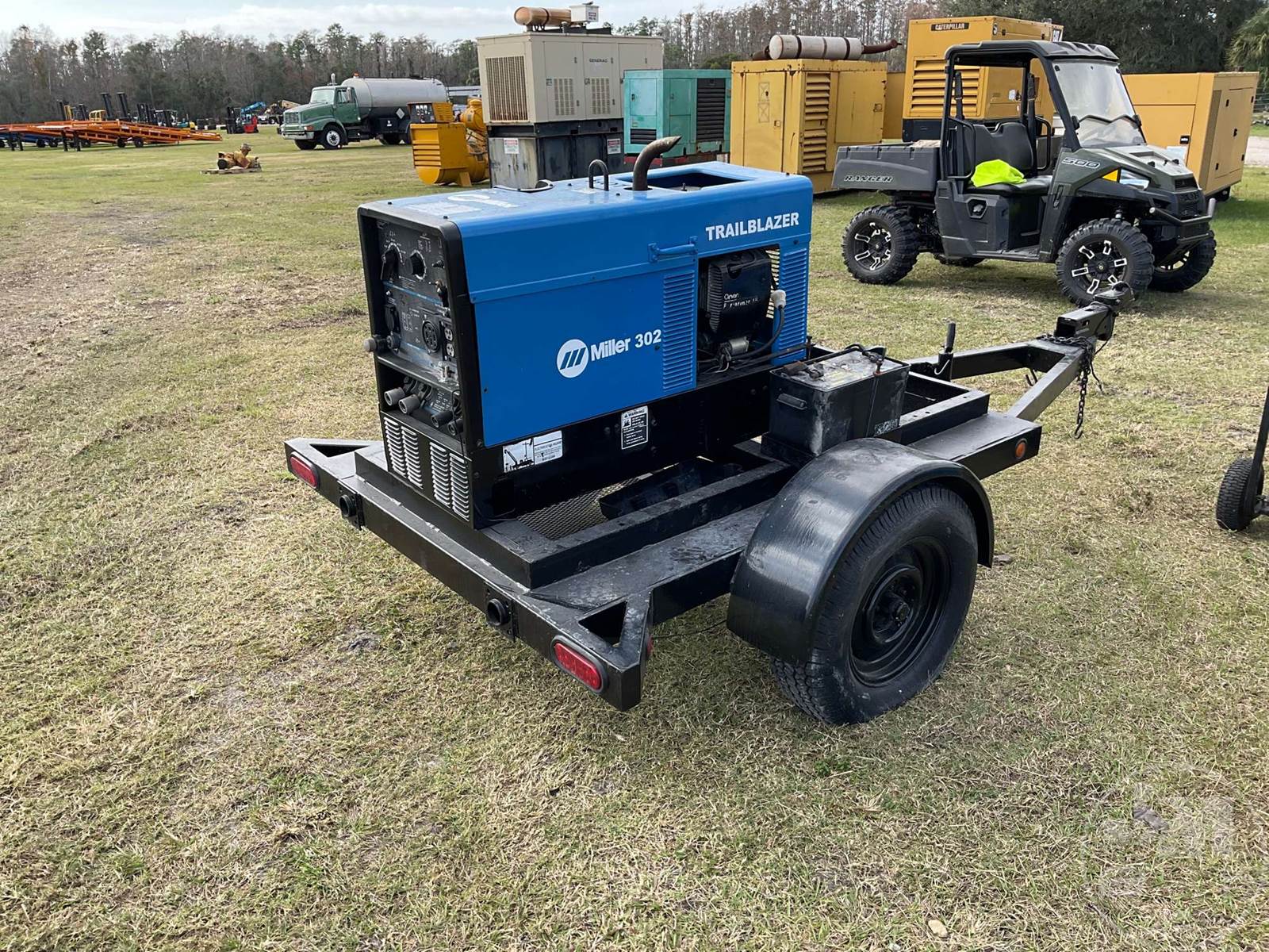 MILLER 300 AMP PORTABLE WELDER, ONAN P218G-I/11546H, GAS, MOUNTED ON, SINGLE AXLE, BALL HITCH, TRAILER, HOUR METER READS: 2161