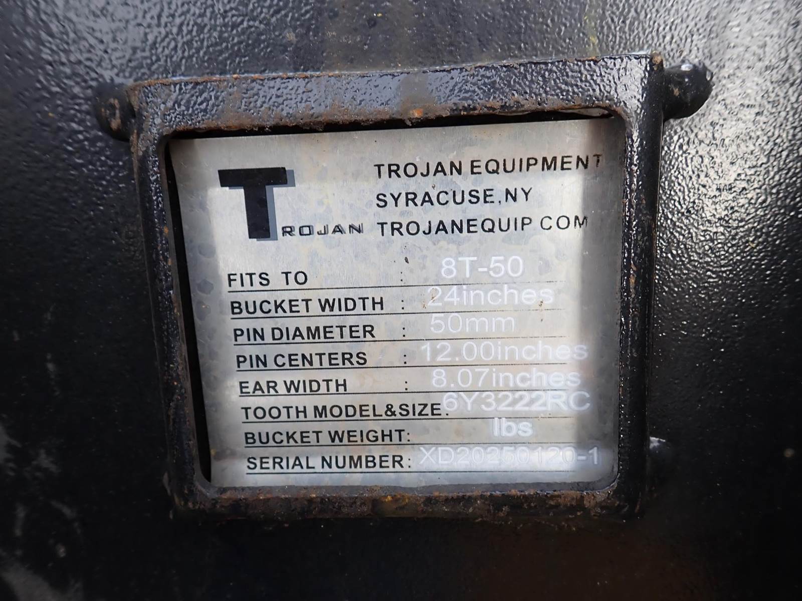 24" digging bucket, 8 1/8" spread, 11 7/8" center to center, 50 mm pin holes
