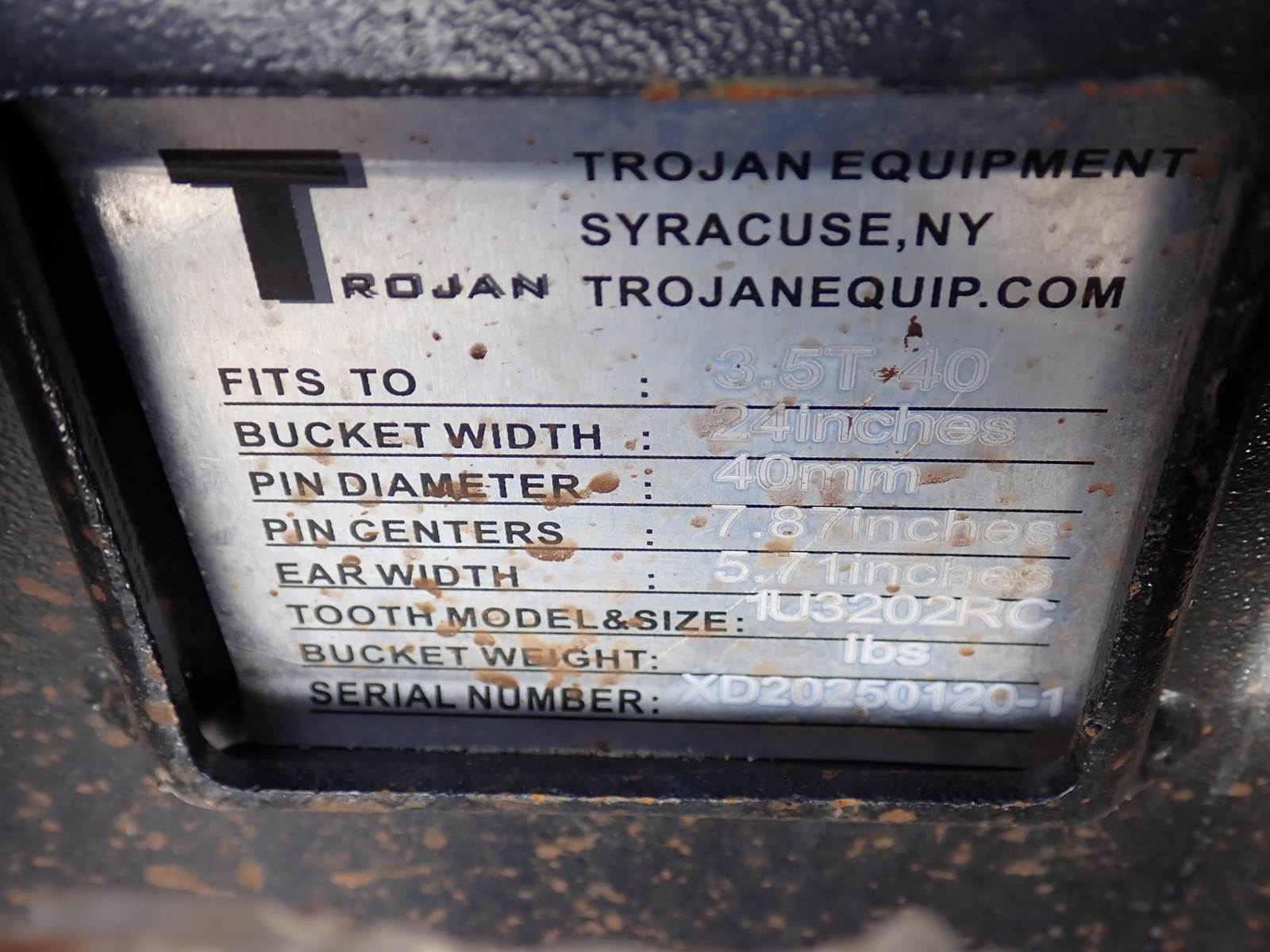24" digging bucket, 5 3/4" spread, 7 7/8" center to center, 40 mm pins