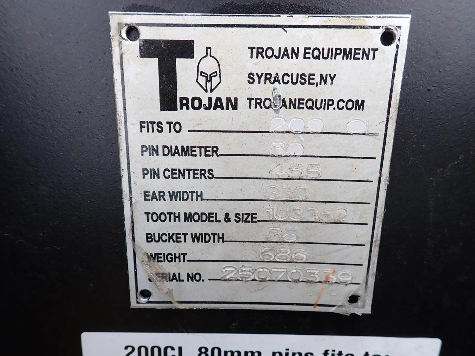 36" digging bucket for 200 size excavator, 13" spread, 18" center to center, 80 mm pins