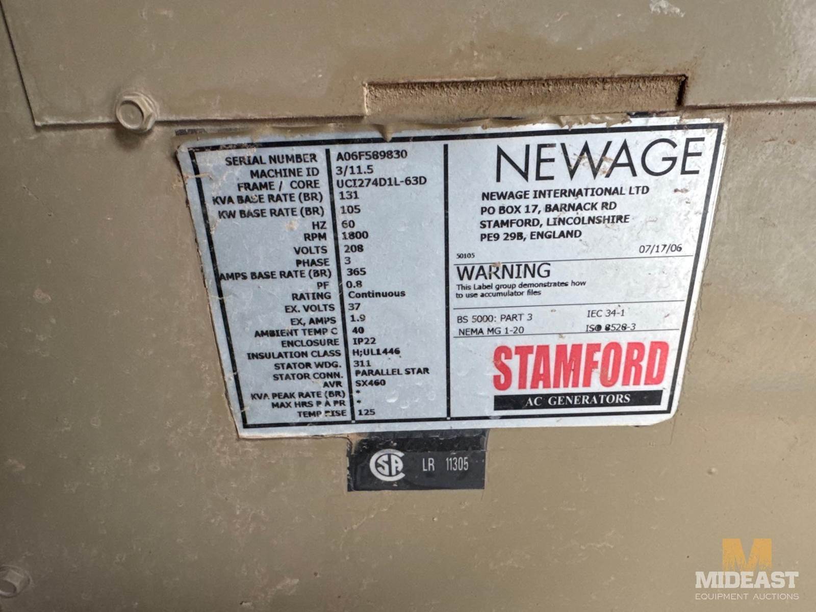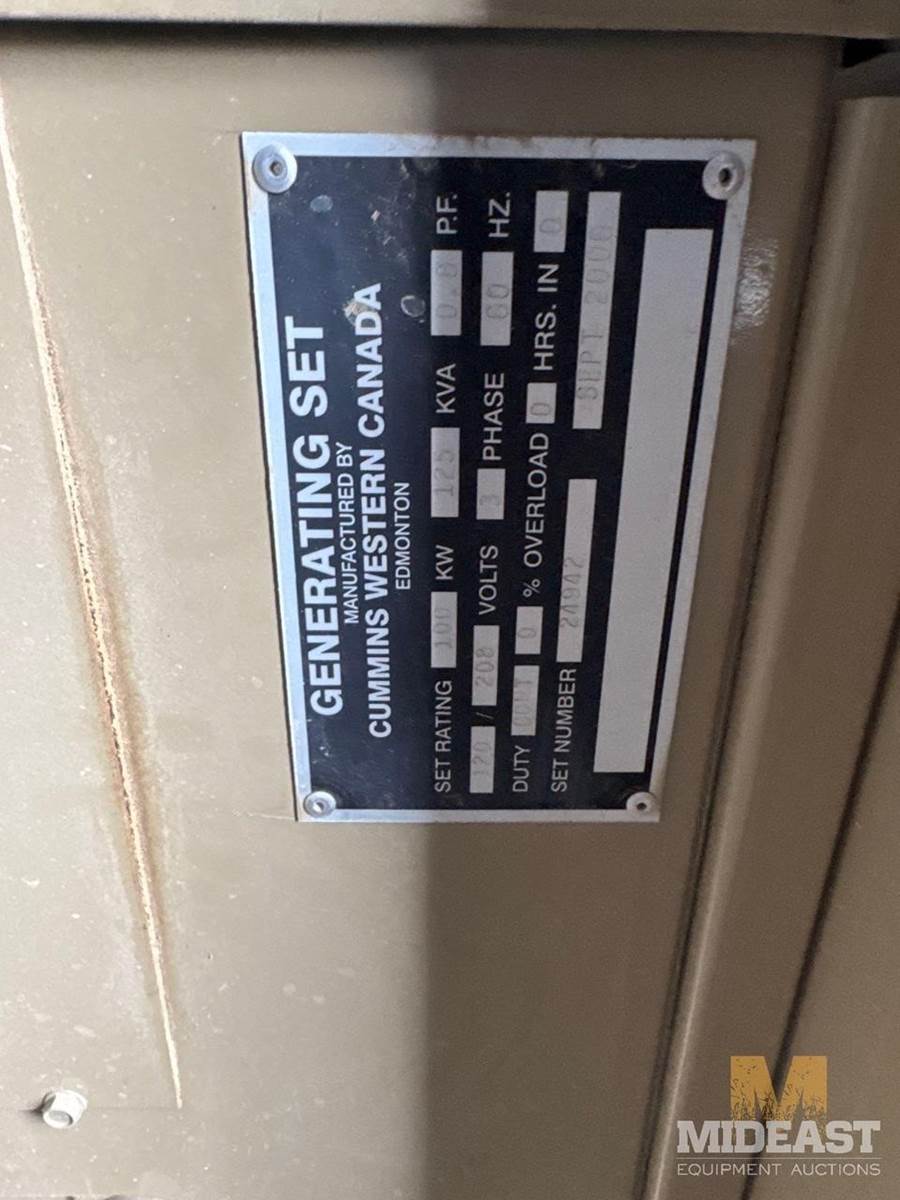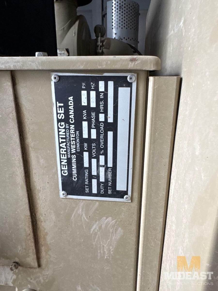 Two Power Generators, Engine 1 has 10,265 hours Powered by Cummins Engine. 3 Phase, 208Volts, 365 Amps 125 KW Engine 2 9813 hours Powered by Cummins Engine208 Volts 365 Amps 125 KWself contained Skid