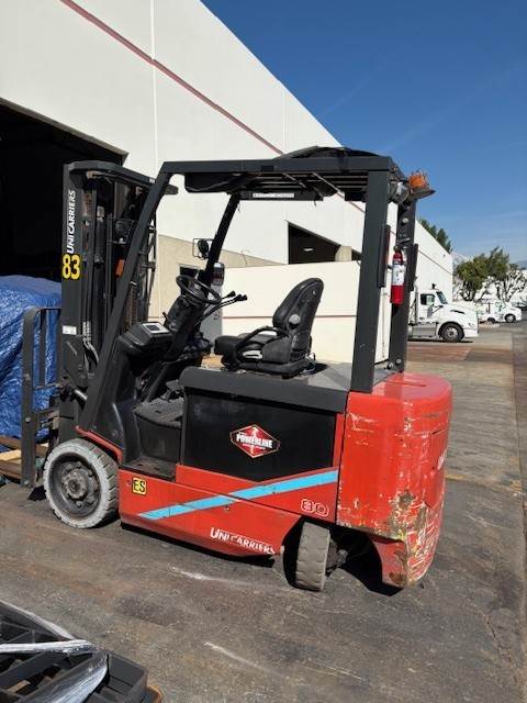 Unicarriers BXC80N, s/n: CTG1B2-971544, 86/188" triple stage mast, sideshifter, w/36v battery, running and operating, 8000lb cap, non marking tires, lbr, 48" forks, 5703hm, x-rental, good shape overall, sde