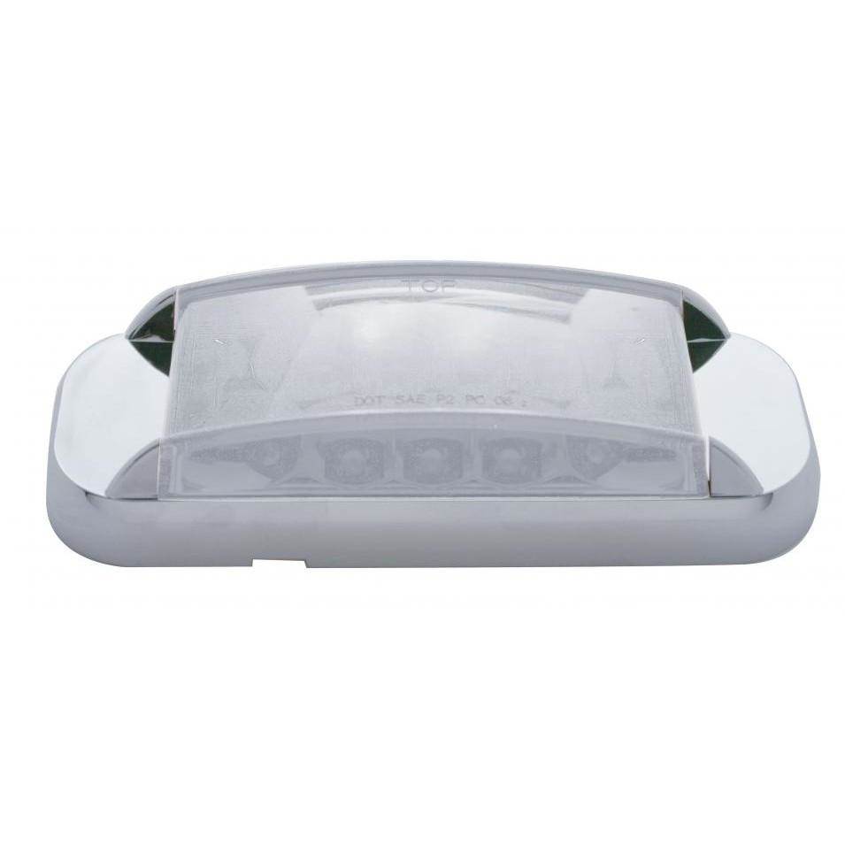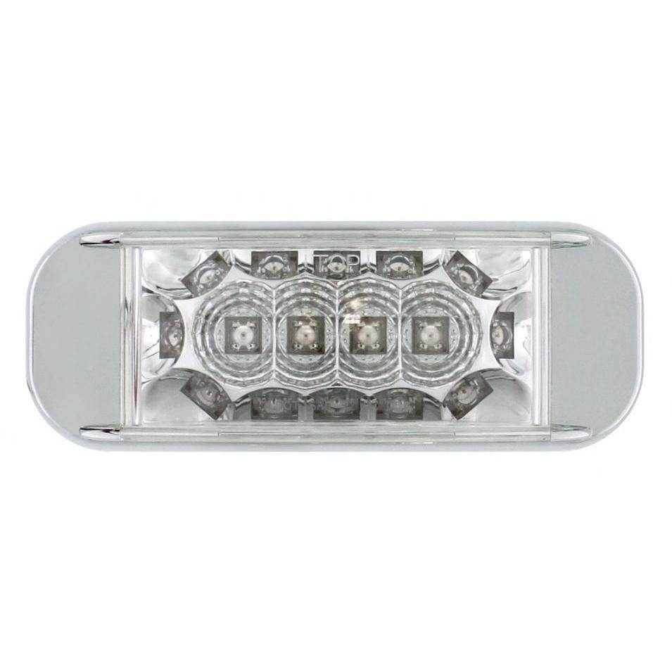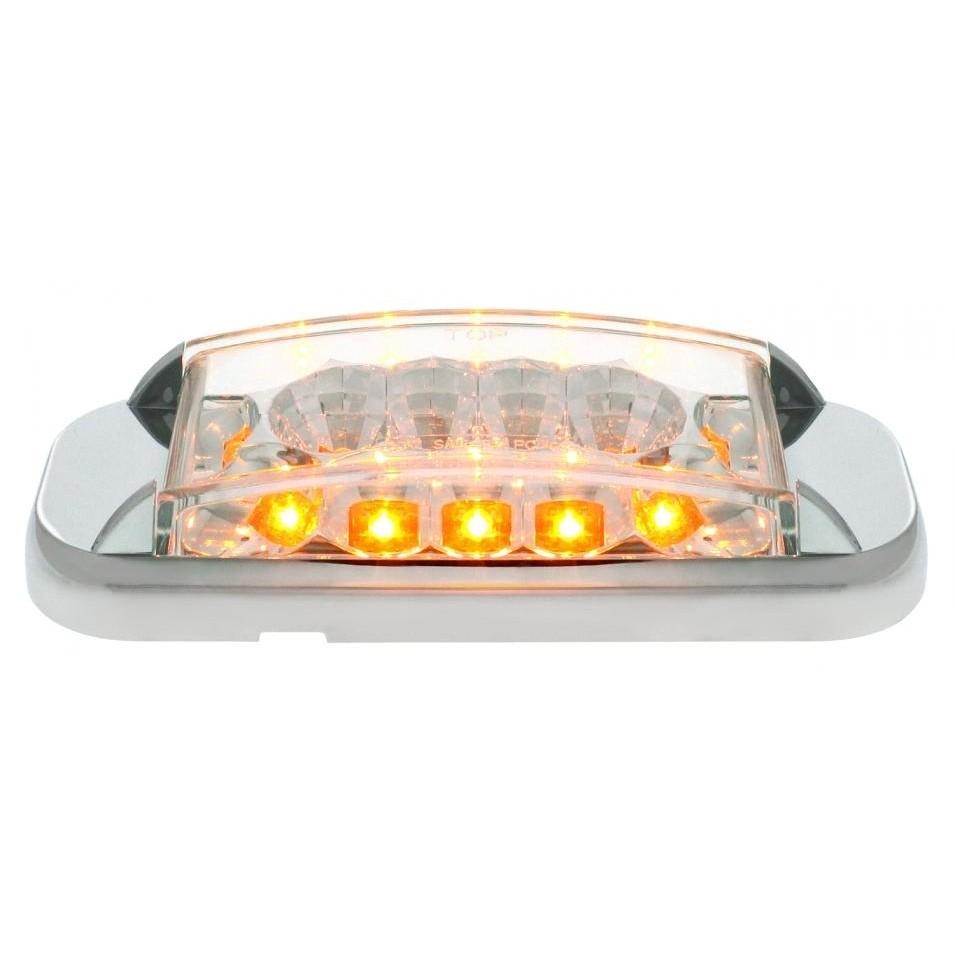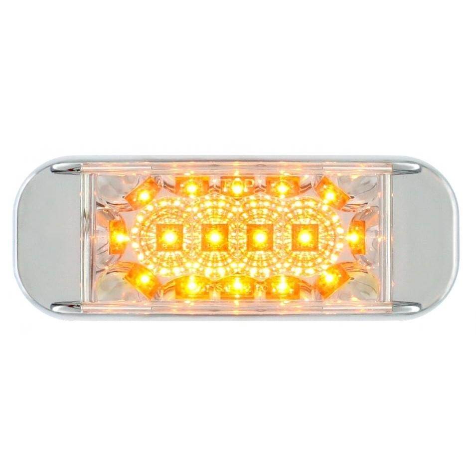 RECTANGULAR MARKER LIGHT WITH REFLECTOR - CHROME BEZEL - 16 AMBER LED - CLEAR LENS - MOUNTING HOLES 4 7/8 INCH APART - 5L X 2W X 1 5/16H