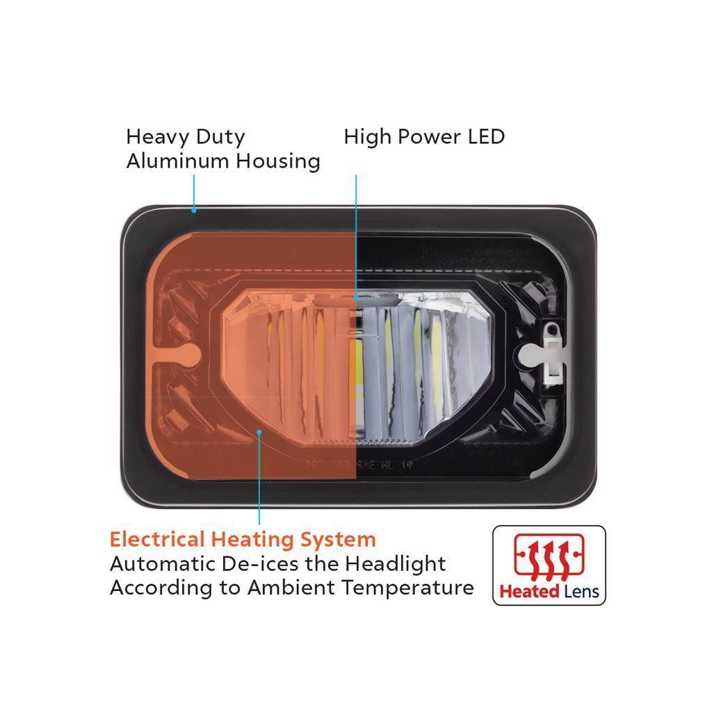 Ultralit - Heated 4" X 6" LED Headlight Low Beam - Black