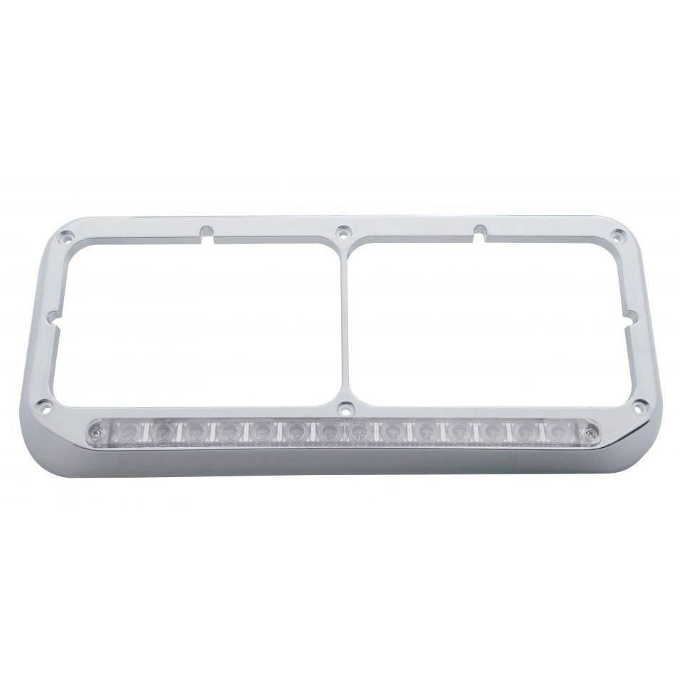 CHROME PLASTIC 14 WHITE LED RECTANGULAR DUAL HEADLIGHT BEZEL WITHOUT VISOR - CLEAR LENS - FOR OFF ROAD USE ONLY