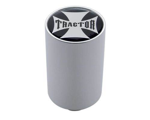 CHROME ALUMINUM 3 INCH AIR VALVE KNOB WITH GLOSSY TRACTOR CROSS STICKER - BLACK - 1 15/16D X 3 1/2T