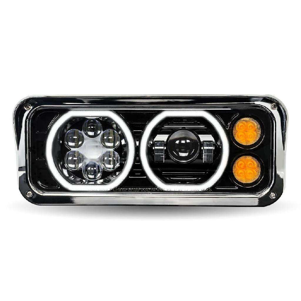 Black LED Projector Headlight Assembly With Auxiliary Halo Rings - Amber Turn Signal - High-Low Beam - Driver Side - Replacement for 4" x 6" Headlight