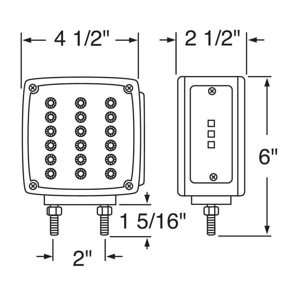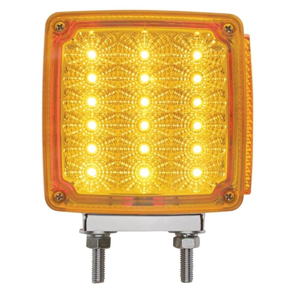 SQUARE DOUBLE FACE REFLECTOR 39 LED TURN SIGNAL - DRIVER SIDE - 18 AMBER LEDS-18 RED LEDS-3 AMBER MARKER LEDS - AMBER LENS - DOUBLE STUD MOUNTING - HEAVY DUTY CHROME HOUSING - 4 1/2L X 2 1/2W X 6H