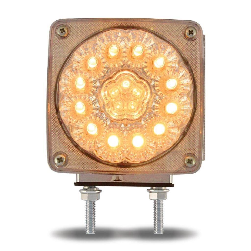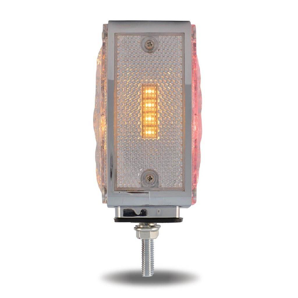Clear Amber--Clear Red Turn Signal & Marker Double Face LED Square Fender Light - Driver Side - Double Post (38 Diodes)