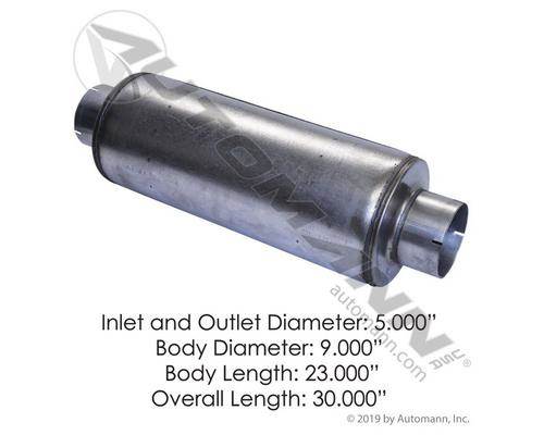 MUFFLER 5 INCH INLET/OUTLET 9 INCH BODY 23 INCH BODY LENGTH 30 INCH OVERALL LENGTH