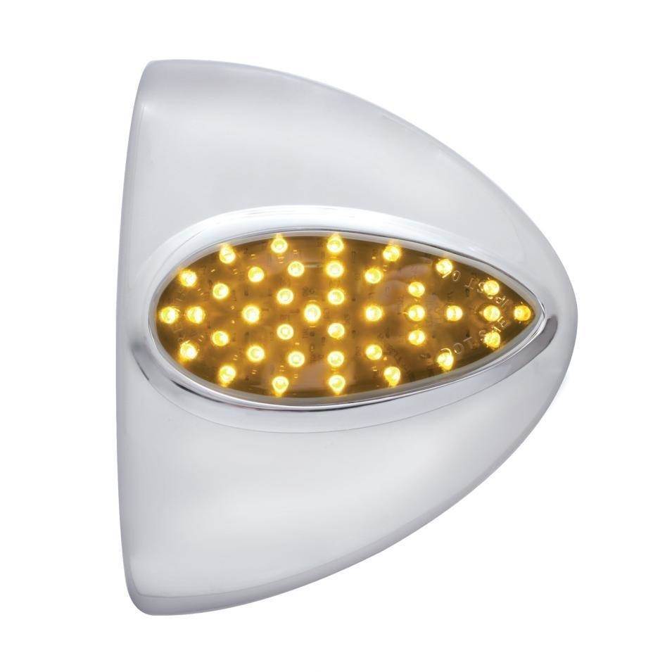 TEARDROP CHROME PLASTIC PETERBILT HEADLIGHT TURN SIGNAL LIGHT COVER - 39 AMBER LED - CHROME LENS