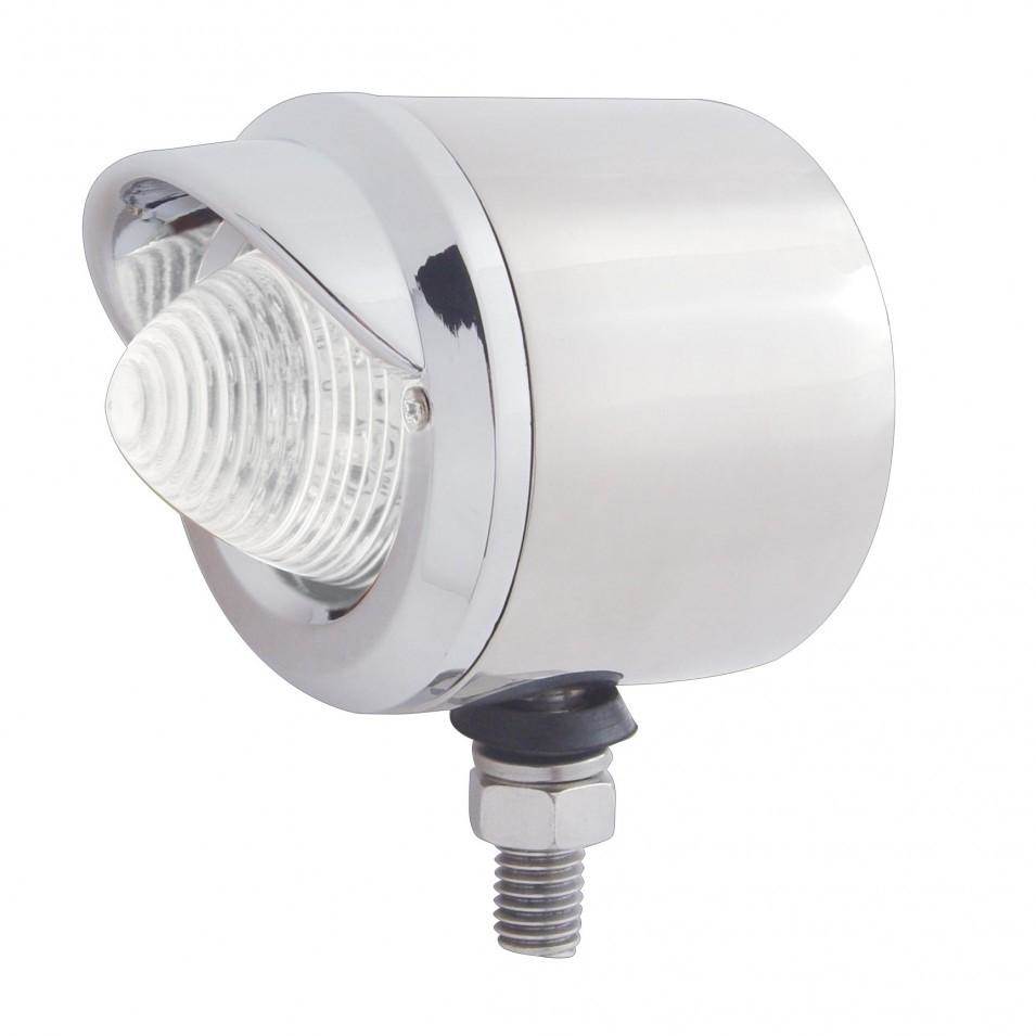 STAINLESS 2 INCH ROUND SINGLE FACE LIGHT WITH 9 AMBER LED BEEHIVE LIGHT & VISOR - CLEAR LENSS