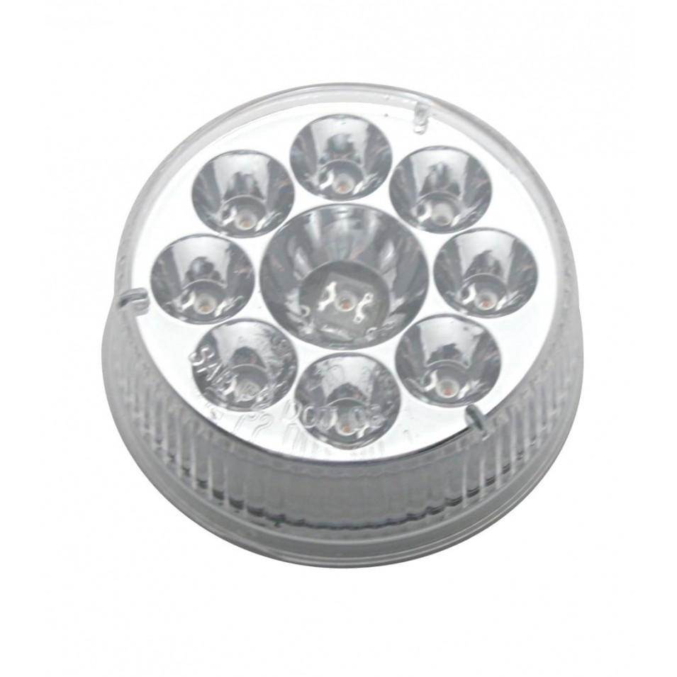 ROUND 2 1/2 INCH REFLECTOR CLEARANCE-MARKER LIGHT - 9 AMBER LED - CLEAR LENS - 2 1/2DIA X 7/8H
