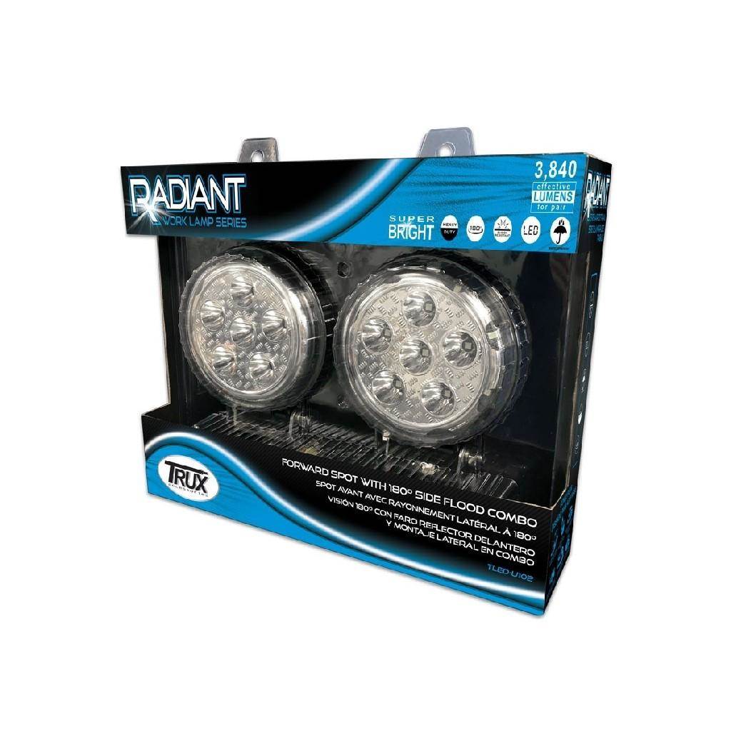 Radiant Series Universal White 4.5" Round Work Light - 3 Side Facing Diodes Provide 180ยบ Field of Light - 4300 Raw Lumens - 1920 Effective Lumens Each - Sold As A Pair