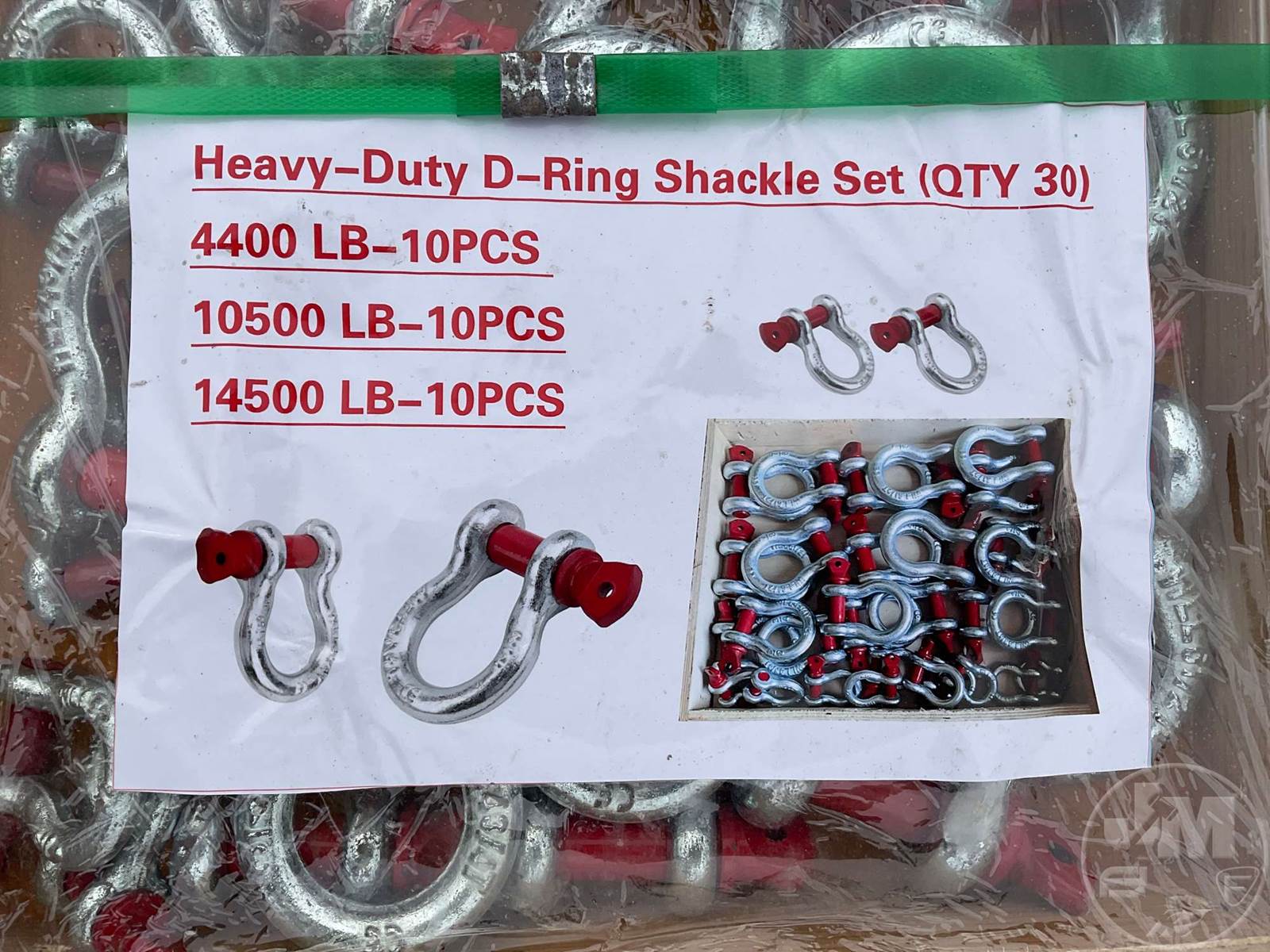 UNUSED HEAVY DUTY D-RING SHACKLE SET, LOT OF (30) D-RING SHACKLE SET (10) 4400LBS, (10) 10500LBS, (10) 14500 LBS