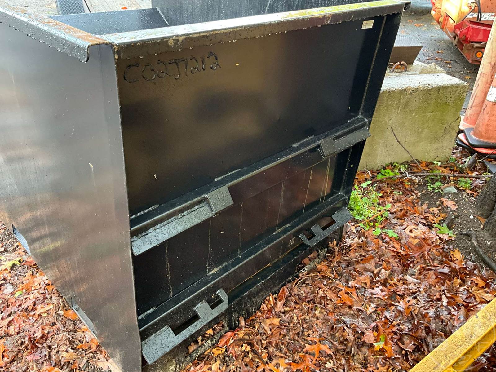UNUSED KC STANDARD DUTY 2 CY CAPACITY DUMPING HOPPER, FORK POCKETS, SKID STEER