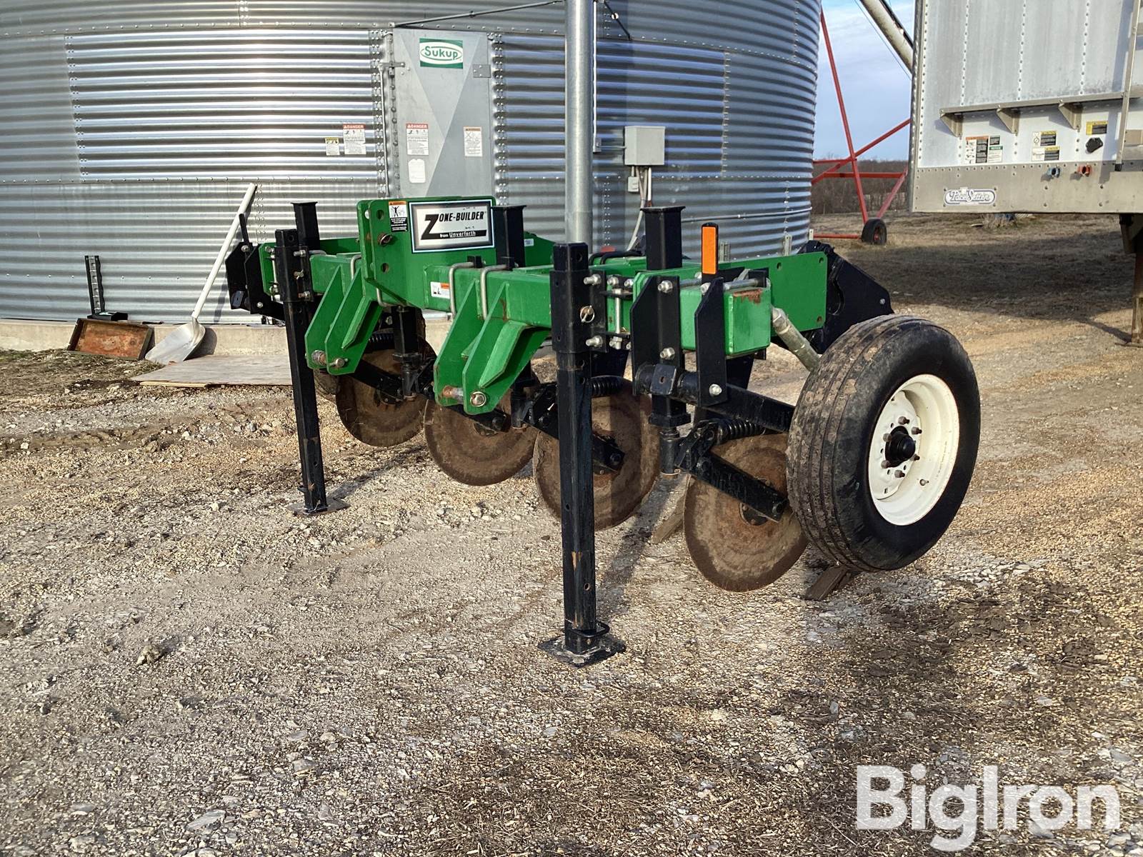 Unverferth Zone-Builder 4-Shank Ripper, 3 Point Hitch, 30” Spacing, (4) 23.5” Coulter Blades, Spring Shanks, 98” Working Width, 11’4” Transport Width, (2) Jack Stands, (2) 7.60-15 Tires, SN: A41 470 224