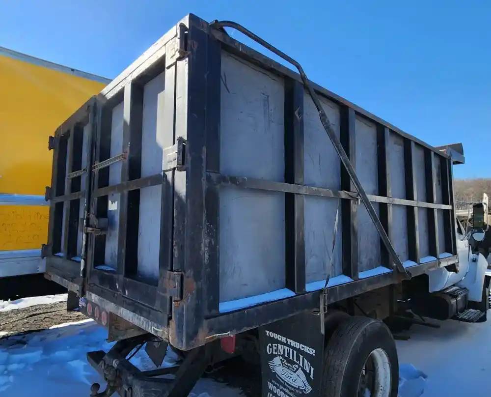 (Used) 2007 Ford F-650, DUMP BODY- Make: Dump Body, Color: Black, Material: Steel, Dimensions: Length=14FT, Width=8FT, Front Dimensions: Height=5.9FT, Rear Dimensions: Height=4.8FT, Damage Reference images for condition, For more information about this item, give us a call. We ship Worldwide! (CRG HEAVY TRUCK PARTS) 929 W PULASKI HWY ELKTON, MD 21921, Length: 14FT