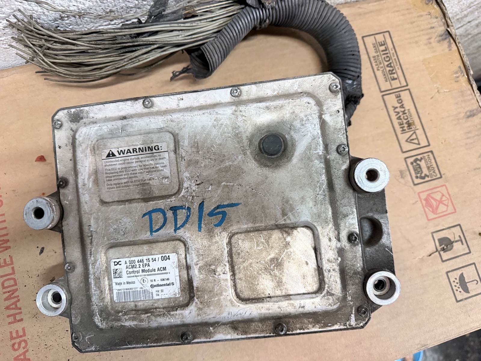 📝 DESCRIPCIÓN PROFESIONAL You are purchasing a Detroit Diesel DD15 ACM 2.2 EPA10 Control Module. • OEM Continental unit • Part Number: A 000 446 15 54 / 004 • Removed from DD15 EPA10 engine • Fits 2010–2013 DD15 applications • Used condition – cosmetic wear visible (see photos) • Wiring harness included as shown IMPORTANT: This module must match your EPA configuration (EPA10). Not compatible with EPA07 systems. Buyer is responsible for verifying compatibility and programming requirements prior to purchase.