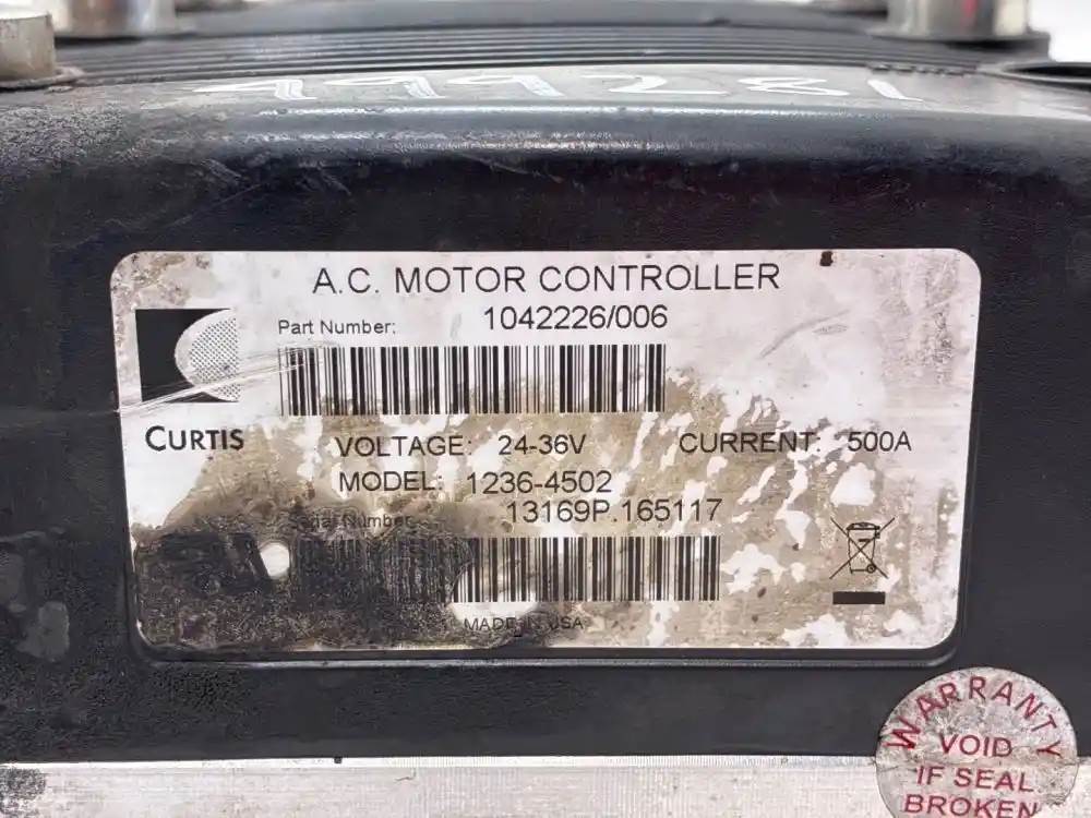 (Used) Control Modules, VEHICLE ECM- CURTIS: MOTOR CONTROLLER- Part Number: 1042226/006, Serial Number: 13169P.165117, Voltage: 24-36V, Current: 500A, Model: 1236-4502, 1 Rectangular Plug: 35 Pins (Chipped Plastic Edge), For more information about this item, give us a call. We ship Worldwide! (CRG HEAVY TRUCK PARTS) 929 W PULASKI HWY ELKTON, MD 21921