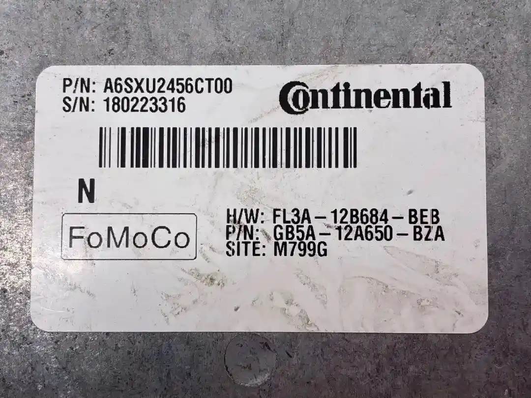 (Used) Engine Parts, ECM- Part Number: A6SXU2456CT00, Serial Number: 394417916, H/W: FL3A-12B684-BEB, P/N: GB5A-12A650-BZA, SITE: M799G, 2 Rectangular Plugs 187 Pins in total, 1: 101 Pins. 2: 86 Pins, For more information about this item, give us a call. We ship Worldwide! (CRG HEAVY TRUCK PARTS) 929 W PULASKI HWY ELKTON, MD 21921, Serial#: 394417916