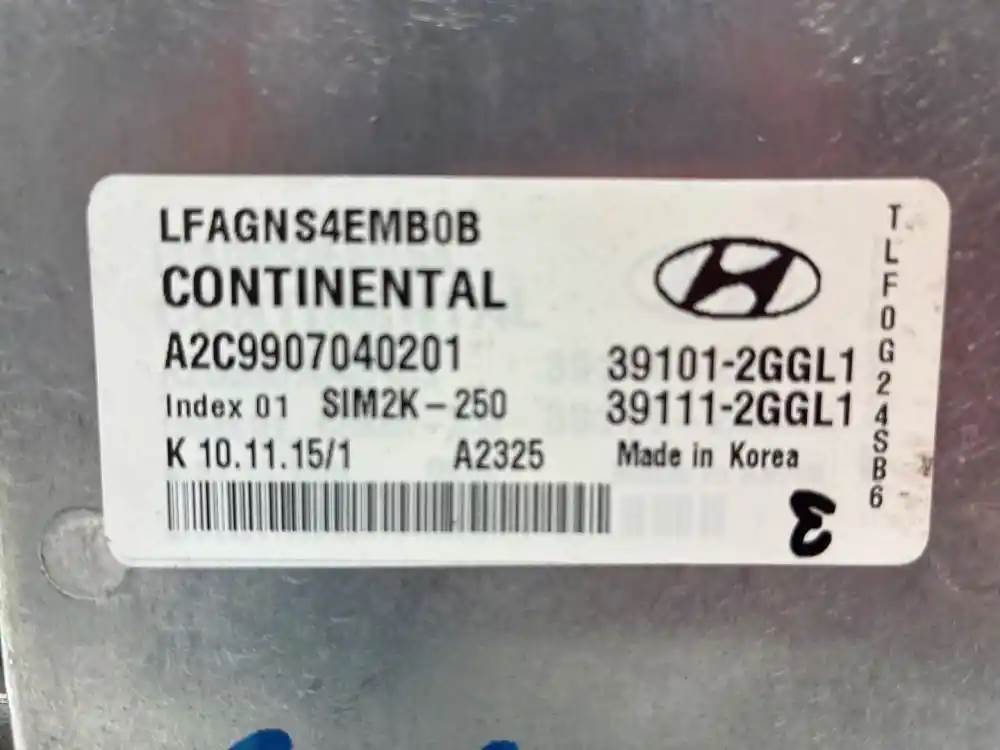 (Used) Engine Parts, ECM- Parts Number: 39101-2GGL1, Serial Number: A2C9907040201, LFAGNS4EMBOB, 39111-2GGL1, Index 01 SIM2K-250, K 10.11.15/1 A2325, GGL1 02, 822502D, 54310942, hpict15, HPB, 2 Rectangular Plugs, 202 Pins total, 1: 105 Pins, 2: 91 & 6 Pins, For more information about this item, give us a call. We ship Worldwide! (CRG HEAVY TRUCK PARTS) 929 W PULASKI HWY ELKTON, MD 21921, Serial#: A2C9907040201