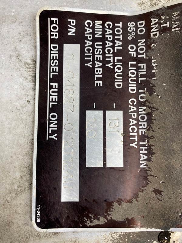 Used Peterbilt Fuel Tank, Side: N/A, 131 Gallons, Length: 53.50", Height: N/A, Material: Aluminum, Steps: No, Shape: Round