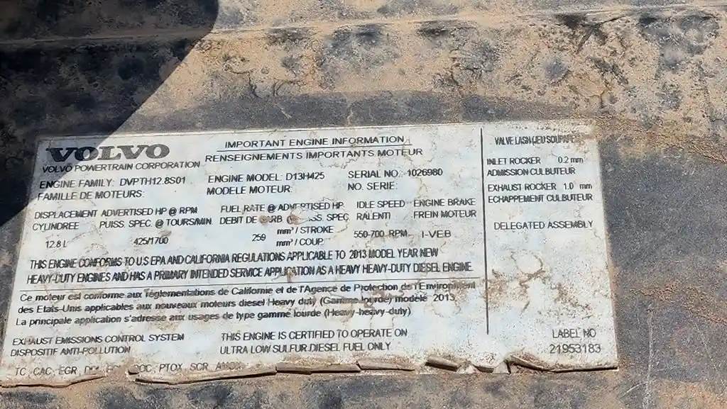 Used, Volvo D13H, 425HP, Esn: 1026980, EPA13, Hours: 24,292 Brake: Yes