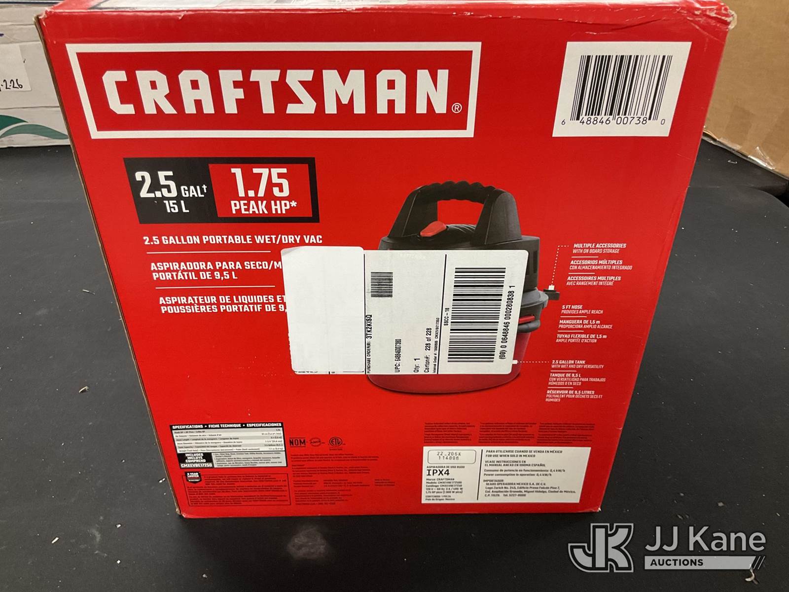 Vacuums (Open In Box ) NOTE: This unit is being sold AS IS/WHERE IS via Timed Auction and is located in Jurupa Valley, CA. Inspection & preview days for this unit are the 2 business days prior to the first day of items closing for this auction, item is located at 4510 Muth Way Jurupa Valley, CA 92509 and hours of operations are 8a-4p. For pre-sale questions, please contact please contact Office Staff @ (310) 353-7140. Dealer License Number 45696. (Buyer is responsible for removal. Assistance by consignor or JJ Kane Auctions is not assured.)