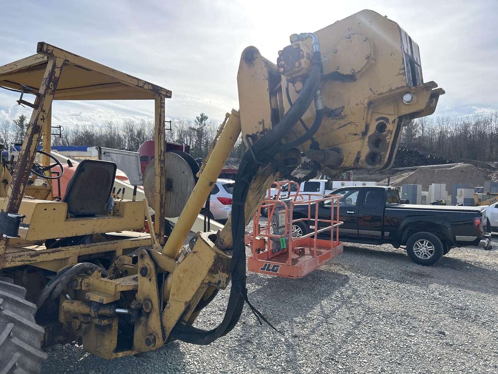John Deere 4045 Diesel Engine, Hydrostatic Drive, 4x4, Approx 58" Hydraulic Reel Carrier Width, 4 Wheel Steer, Rear Vermeer VP8550 Cable Plow Attachment, Hydraulic Swing/Steer/Tilt, Hydraulic Shaker, OROPS, 38x18.00-20 Tires