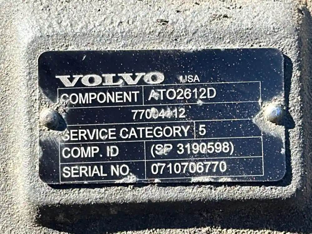 (Used) 2013 Volvo (AT), TRANSMISSION ASSEMBLY- Model: ATO2612D, Serial Number: 0710706770, Part Number: 77004112, Engine: Volvo D13, Reference images for condition. For more information about this item, give us a call. We ship Worldwide! (CRG HEAVY TRUCK PARTS) 929 W PULASKI HWY, ELKTON, MD 21921, Serial#: 0710706770, Engine Make: Volvo, Engine Model: D13, Casting#: 0710706770