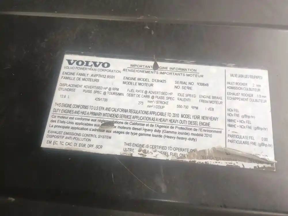 Good running Volvo D13 engine from a 2011 Volvo VNL truck. The Engine has been visually inspected and is in running condition. The horse power is 425. The serial number is AVPTH128S01.If you have any further questions, please feel free to call or email us. We ship anywhere! Thank you!, Serial#: AVPTH128S01, Core Charge: 1000, Horse Power: 425, ARR/CPL: N/A