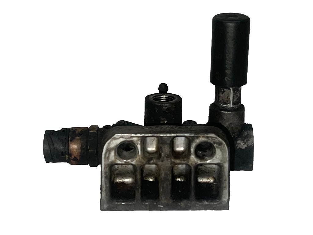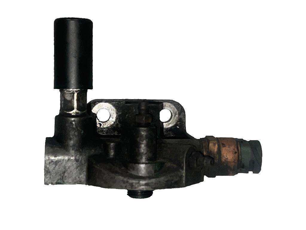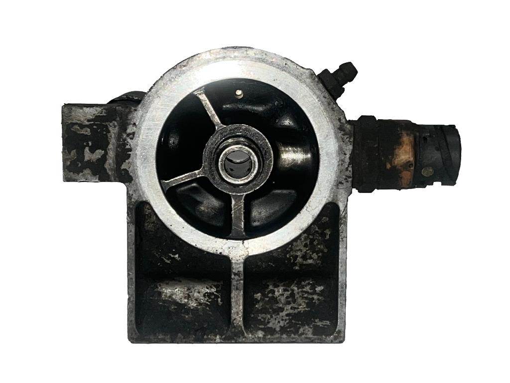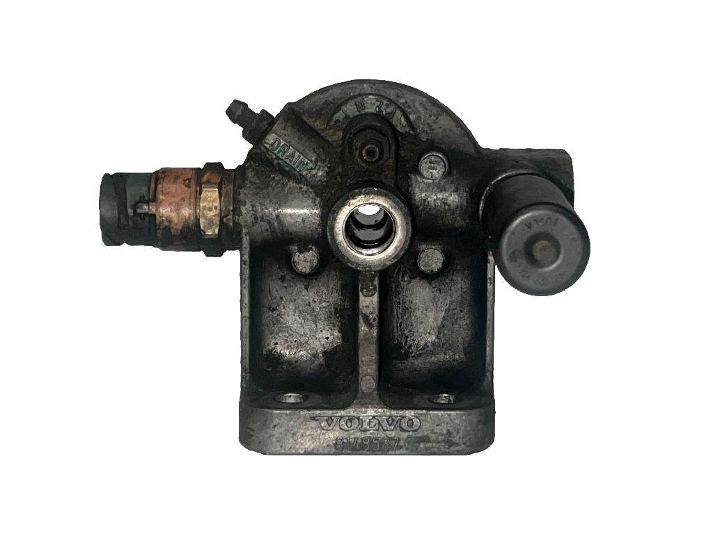 Good used, cleaned and inspected Volvo VED12 fuel filter base assembly with primer pump. Part number: 8148587.