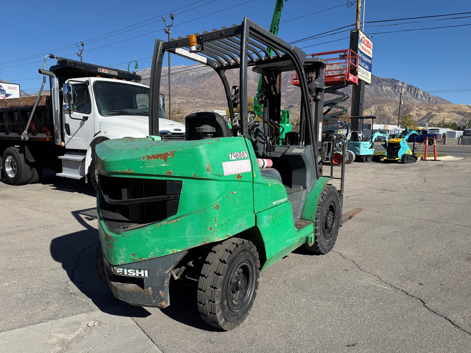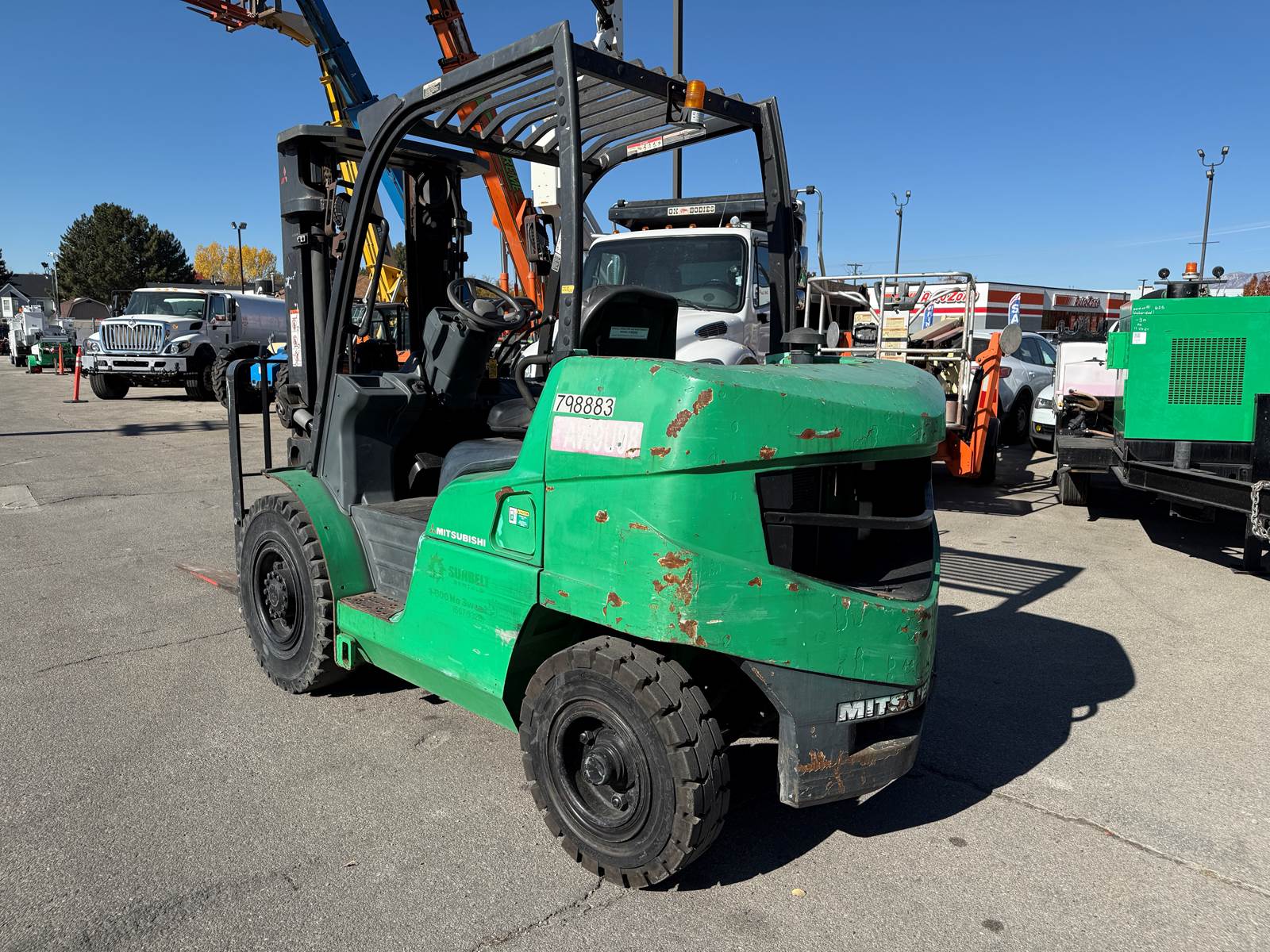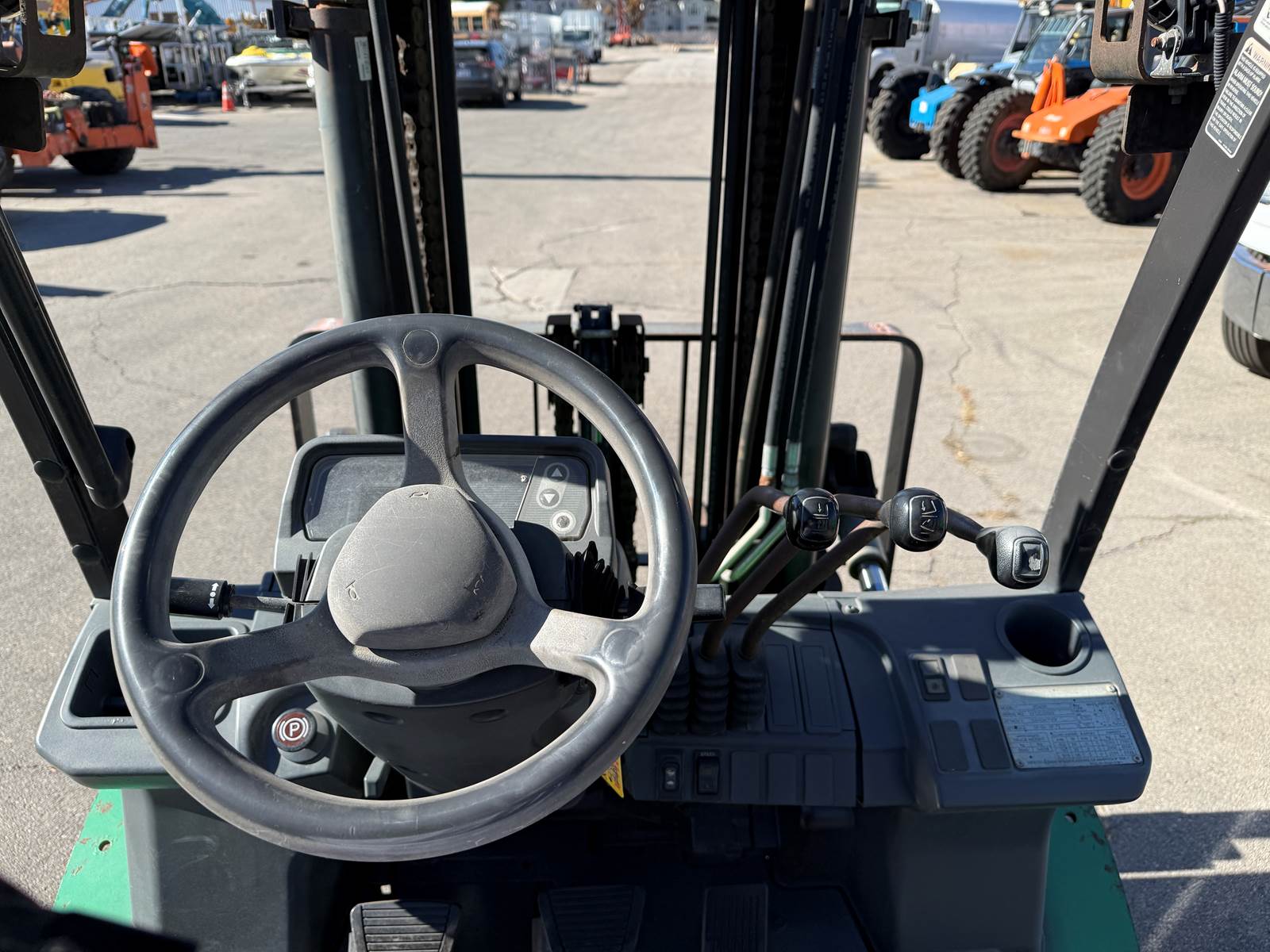 * 2015 Mitsubishi FD40N Forklift * Side Shift * 15’ 7” (187”) Lift Height * 8,000 LB Capacity * Perkins Diesel * 3 Stage * 84” Mast * SN: AF12C00069 * Hour Meter Reads: 2,822 EXTERIOR Paint: Good Body: Good Controls: Good. Operation normal Tires: Good condition. Traction Solid - Pneumatic Type F: 8.25-15 R: NEW 7.00-12 Wheels: Steel. Good condition Brakes: Good INTERIOR Seats: Good Dash: Good DRIVE Engine Type: Perkins 4 Cylinder Diesel Engine Condition: Good cold start, Good compression, Cylinder balance normal, Good power, No blowby Trans Type: Hydrostatic Trans Condition: Good. Operation normal Final Drives: Good Power Steering: Good. Operation normal Steering: Good Hydraulics: Good. All function and timing within specs Fluid Levels: Good DIMENSIONS W: 55" x H: 7' 7” x L: 10' 2" plus forks Forks: 72” x 5” Carriage Width: 47” Weight: 14,600 LB SUMMARY Great operation! Good on all sorts of terrain! My preference for forklift / tire combo coupled with a Perkins Diesel! What more could you ask for? INSPECTOR Robert Sorrells 801-473-6800 LOCATION: Orem, UT 84057 NEAR: Salt Lake City Area View all our inventory at www.GlobalRemarketing.net FINANCING We have financing options available. Please call Candi for information at 801-358-9635. SHIPPING ESTIMATES We have network of shipping brokers coast to coast allowing for the best shipping rates possible. We pride ourselves in getting quick quotes and for the lowest cost possible. For a more accurate detailed shipping price to your location, please call Candi at 801-358-9635