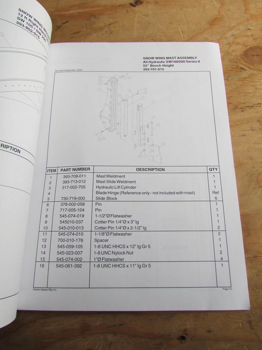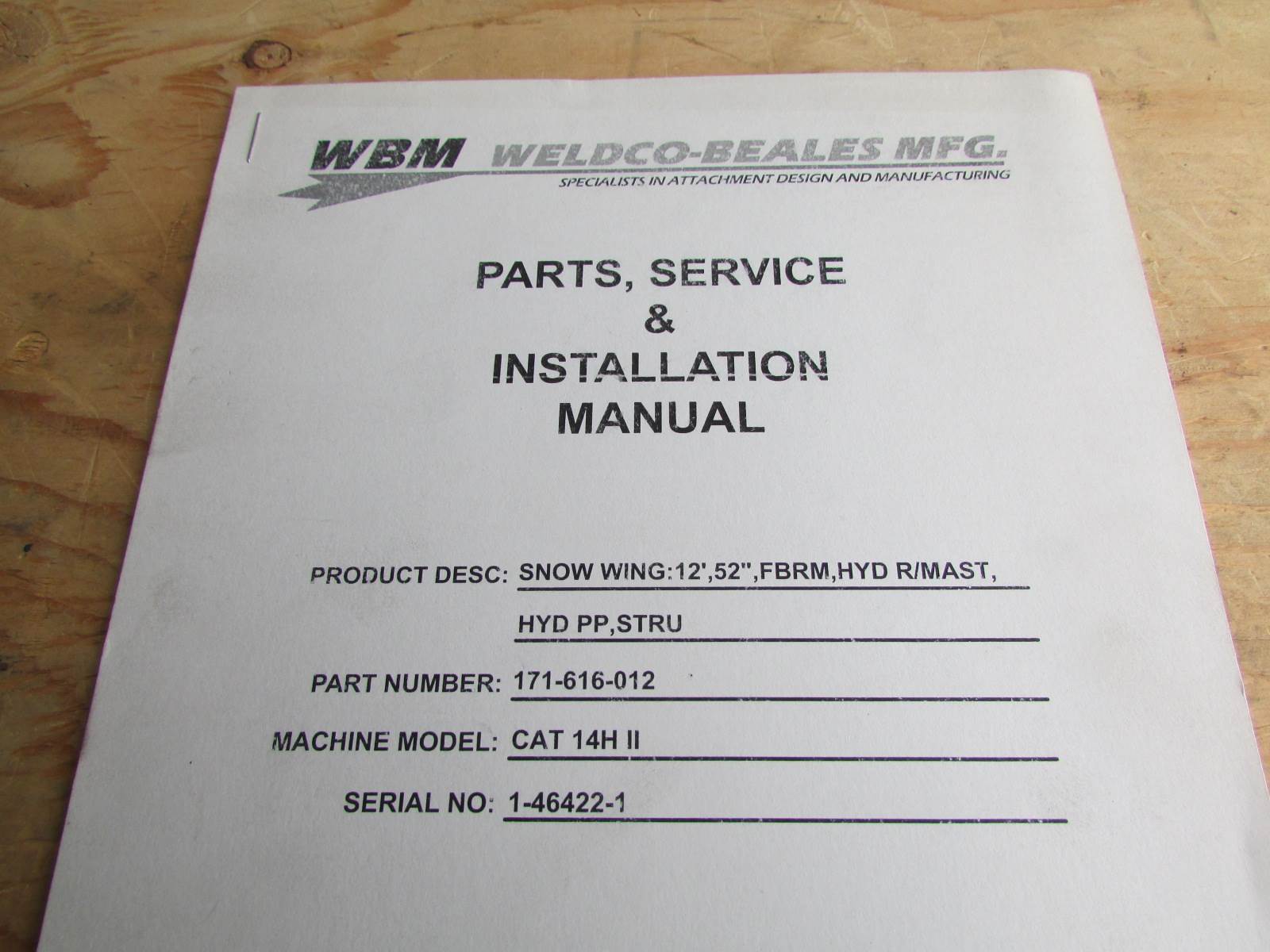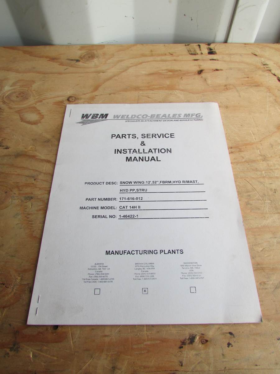 Weldco Beales Cat 14H II 12' Snow Wing Parts, Service and Installation Manual