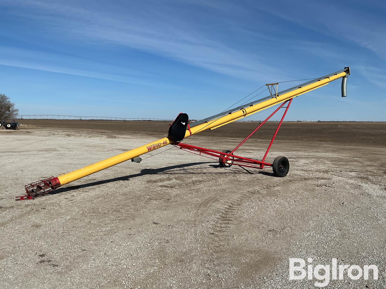 Westfield WR80-46 Auger, 8” Diameter, 46’ Long, Electric Drive-No Motor, 2 Belt Pulley, Crank Winch To Raise, Pin Hitch, Flex Spout, 15” Tires, SN: 221710