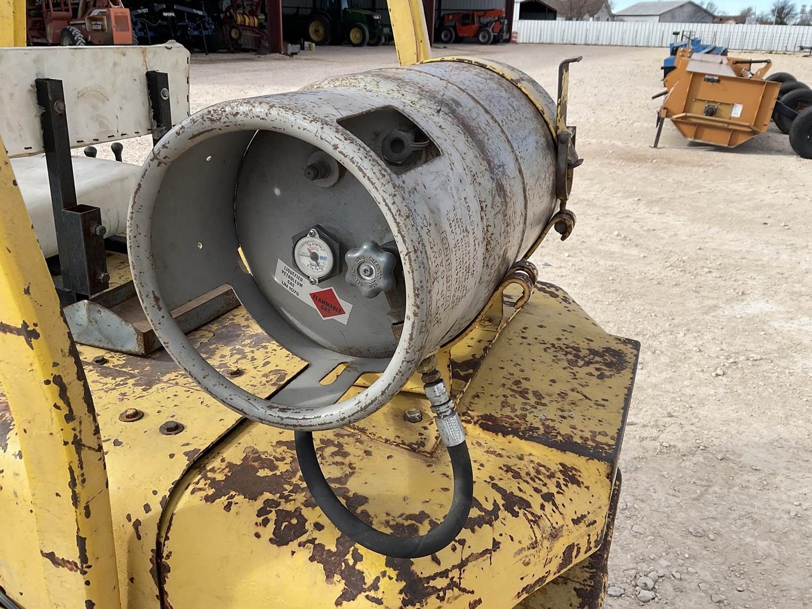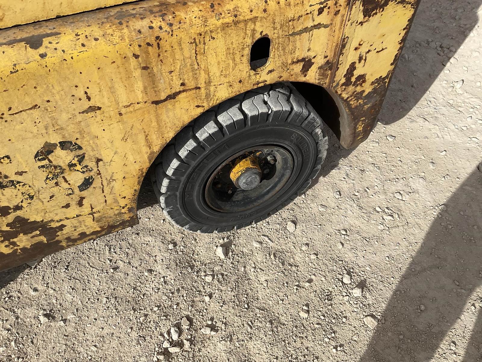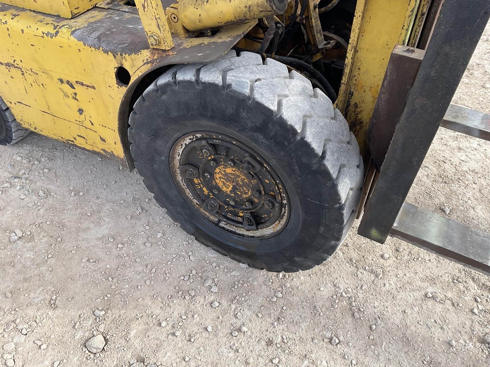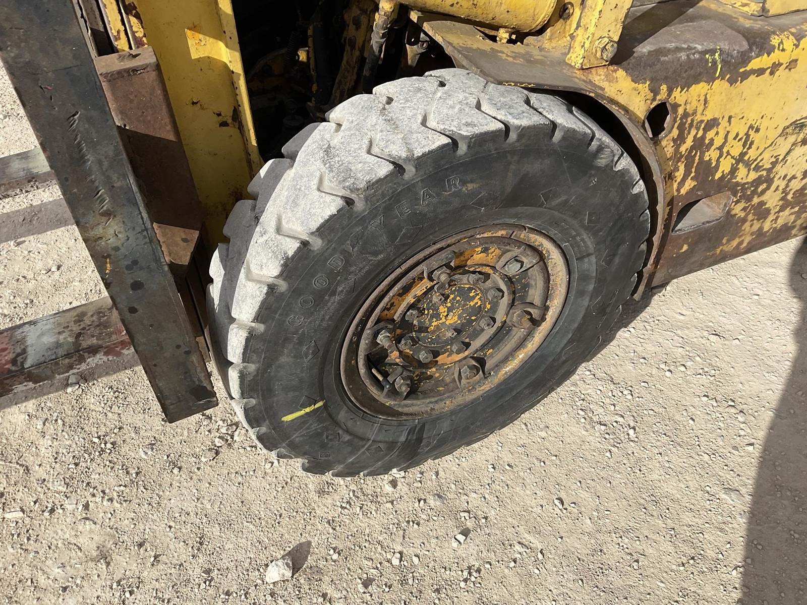 White MY50 LP forklift. Rated for 3225 lbs. Showing 4,883 hours. Fires right up. Runs like it should. Looks to be a good forklift!