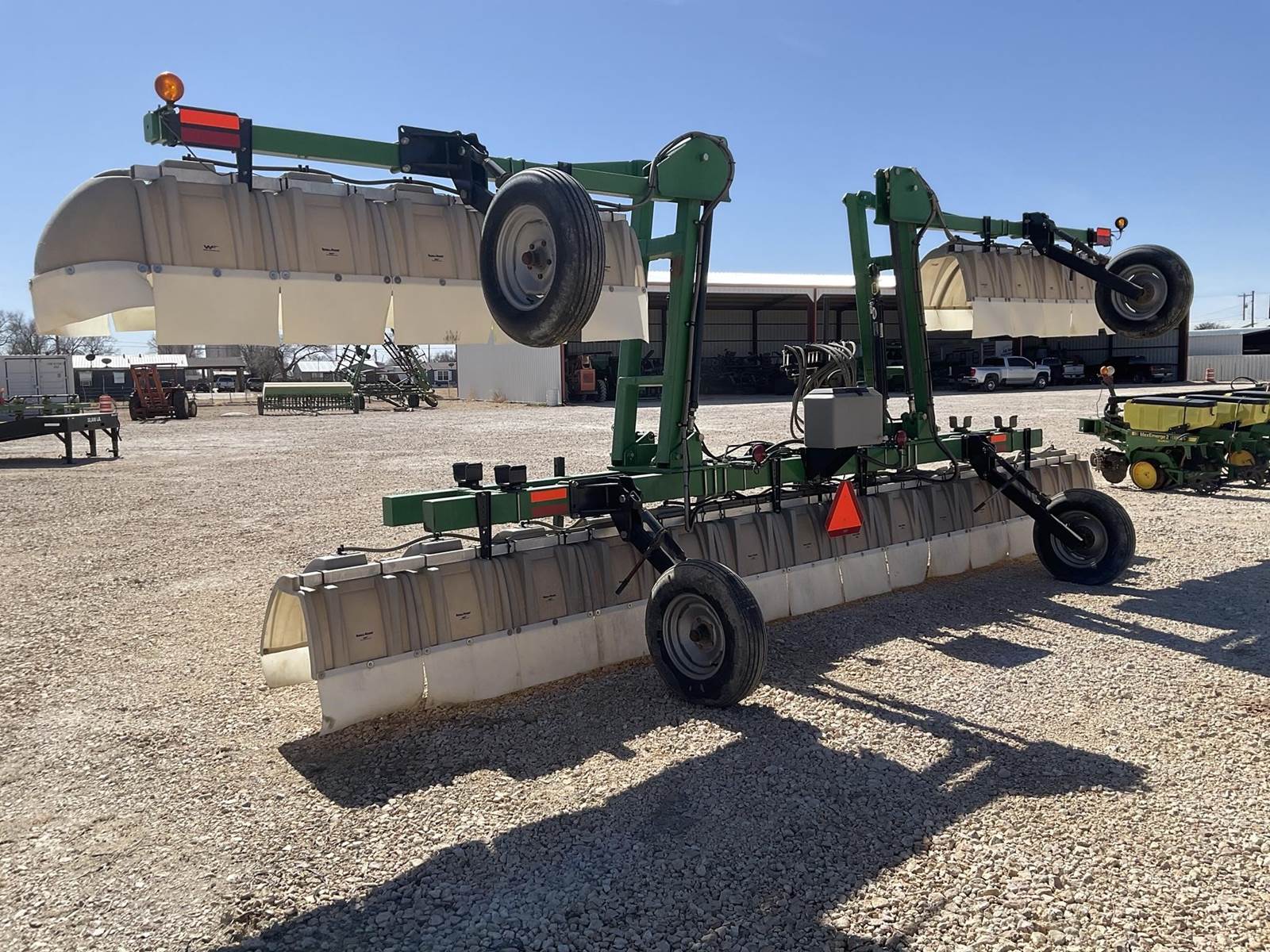 Willmar fabrication 642 42’ broadcast 3pt. stack fold hooded sprayer. It does not have a tank. All the hoods look to be in really good shape. Super nice willmar hooded sprayer!