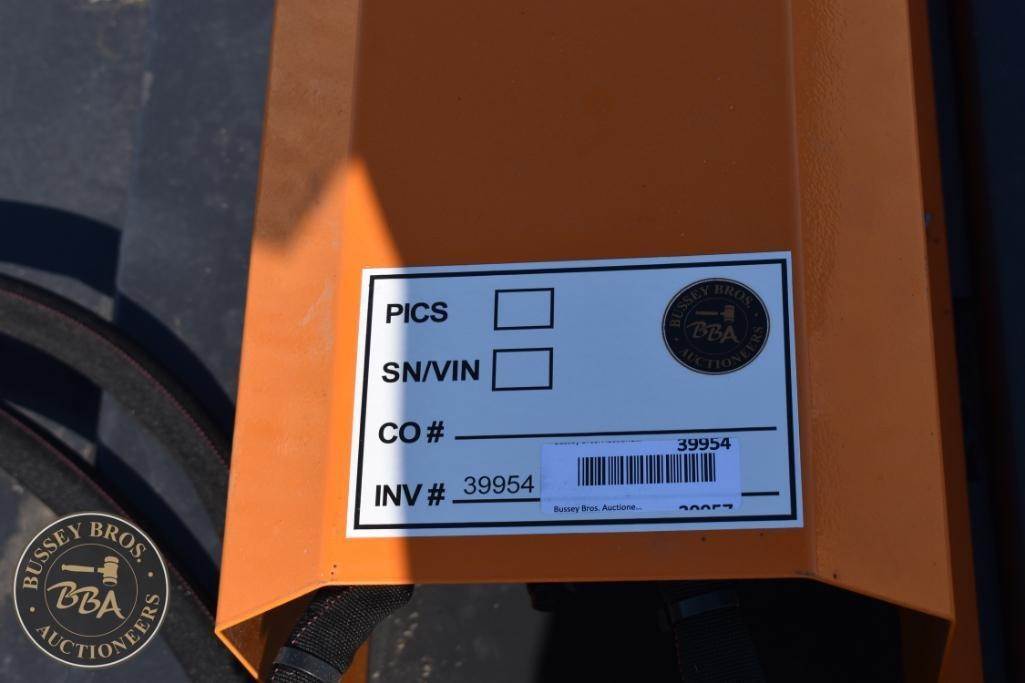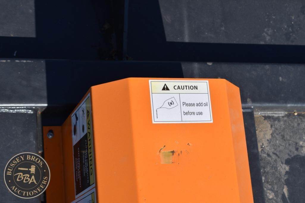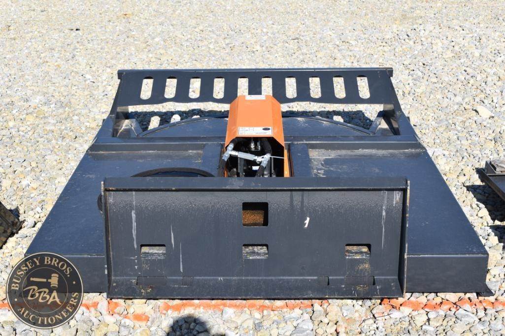 Wolverine BC-13-72W Skid Steer Brush Cutter, 72" Cutting Width, 2025, suitable for 15-20 GPM hydraulic flow, pressure rated at 3000 PSI, approximately 800 lbs in weight, compatible with standard skid steers, features a heavy-duty build and hydraulic motor, Serial ZW-02929.