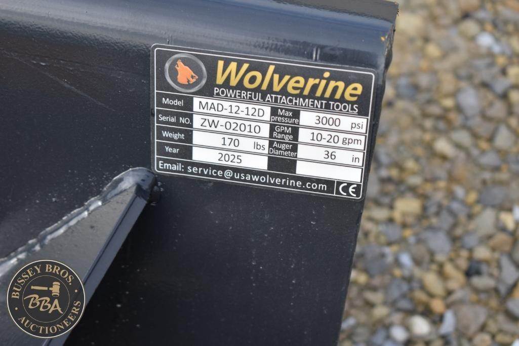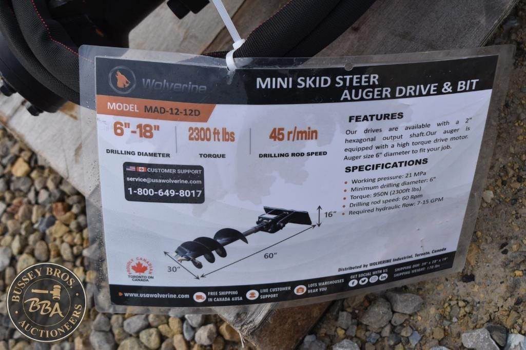Wolverine Mini Auger Drive & Bit Attachment Mini Skid Steer Mount, Planetary gear, 2in hex output shaft, capable of driving up to 36in bit, SN#ZW-02010, NEW/UNUSED