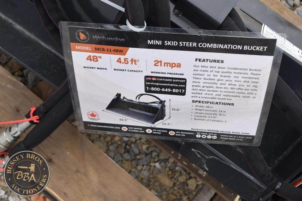 Wolverine Mini Skid Steer Combination Bucket Mini Skid Steer Mount, smooth bucket, hydraulic, 48in, MCD-11-48W, NEW/UNUSED