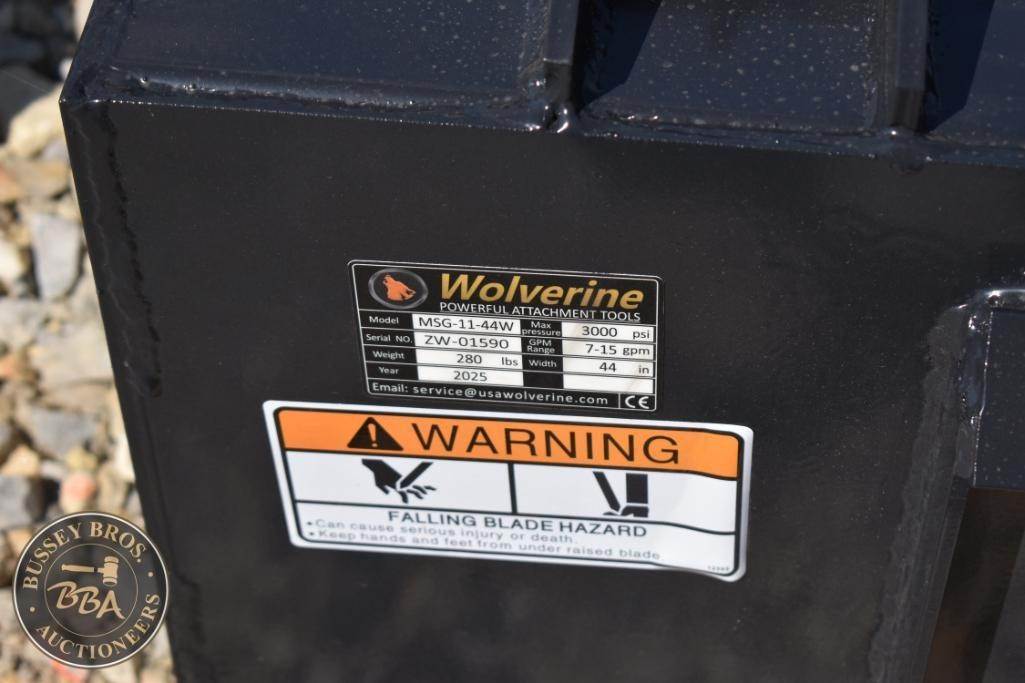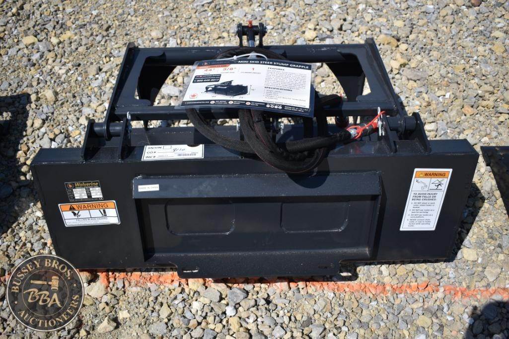 Wolverine MSG-11-44W Mini Skid Steer Stump Grapple, 280 lbs (127 kg) weight, 7-15 gpm hydraulic flow rate, 3000 psibuniversal mini skid steer quick attach, ZW-01509.