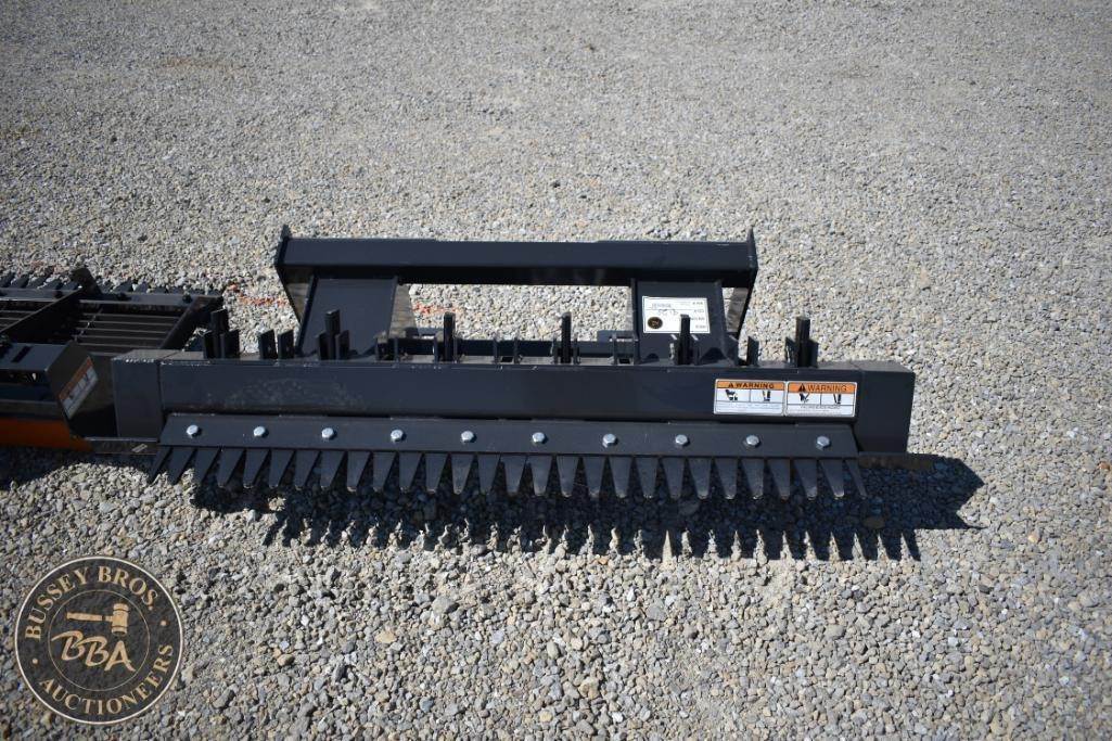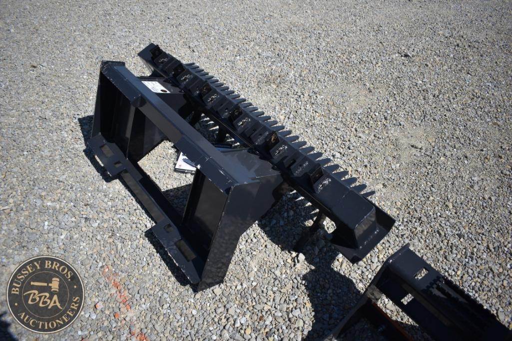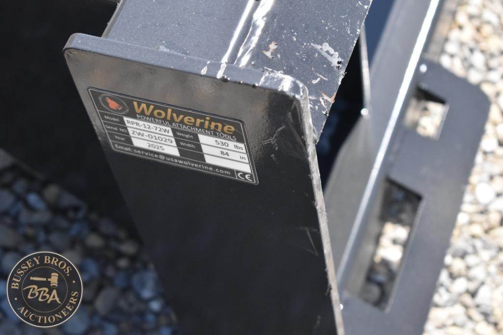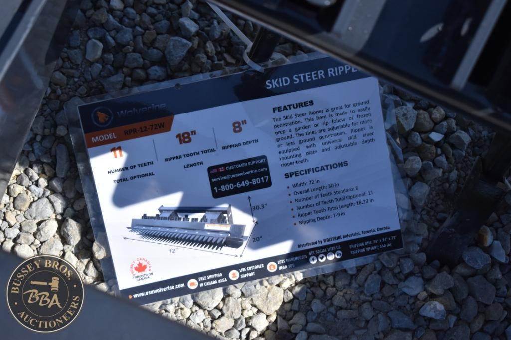 Wolverine RPR-12-72W Skid Steer Ripper Attachment, 11 teeth, 18" teeth spacing, 530 lbs weight, made in Canada, designed for skid steer loaders, features replaceable teeth, Serial Number: CN-00209.
