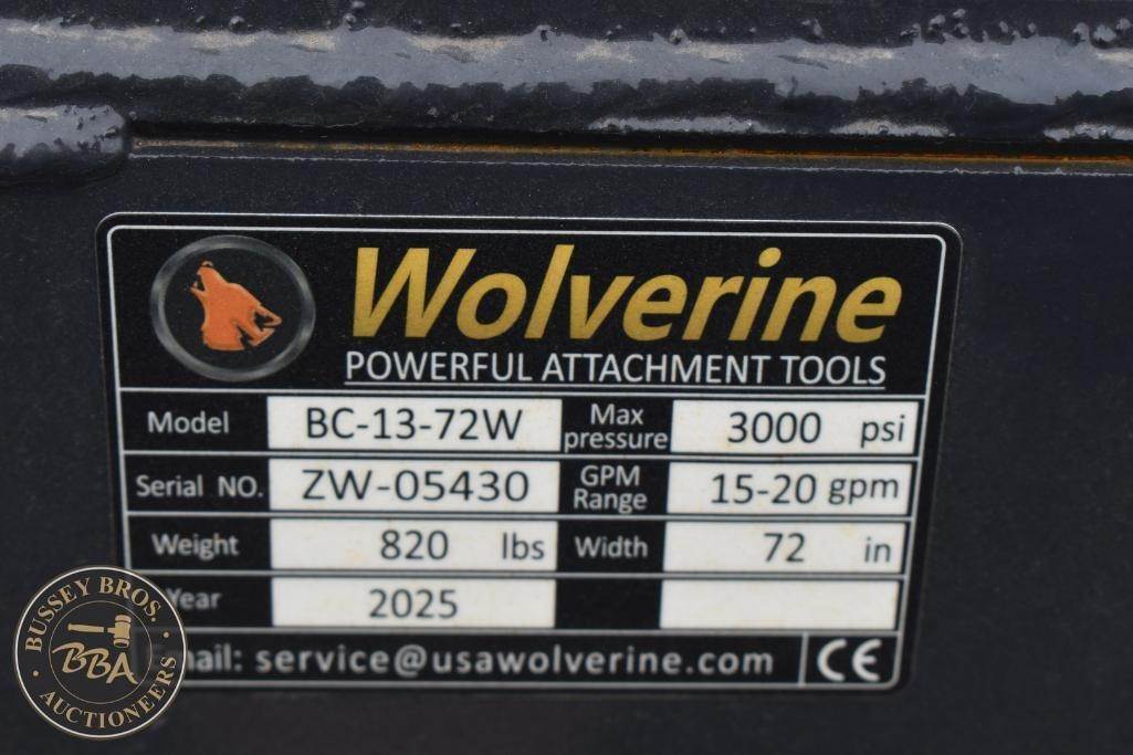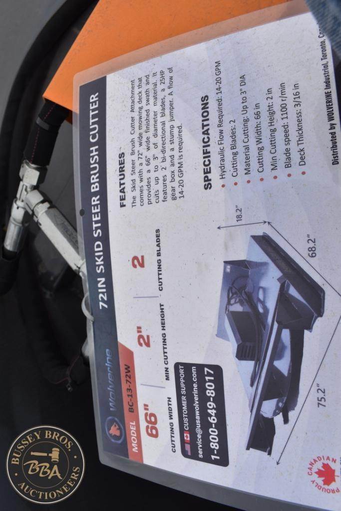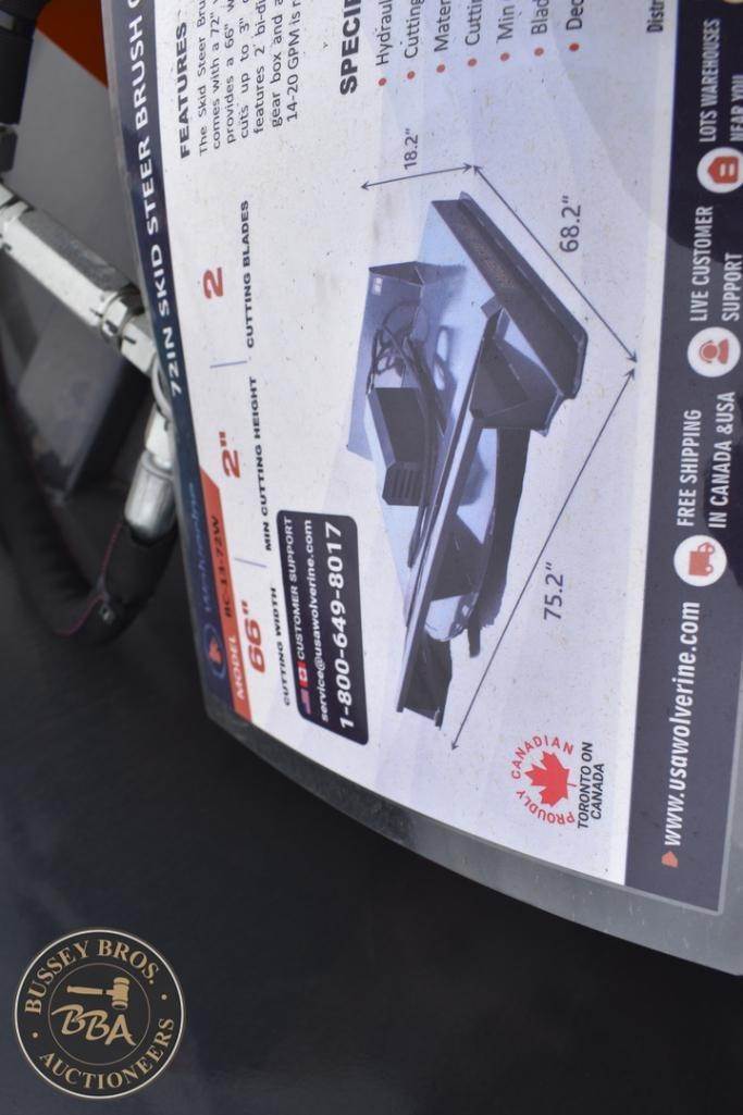 Wolverine Skid Steer Brush Cutter Attachment Skid Steer Mount, brush cutter, hydraulic, 66in cutting width, 2in min cutting height, 2 cutting blades, BC-13-72W, SN#ZW-05430, NEW/UNUSED