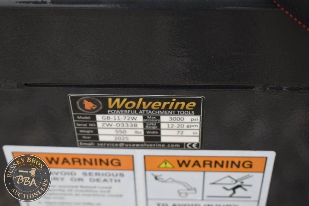 Wolverine Skid Steer Brush Grapple Attachment Skid Steer Mount, hydraulic, 72in width, 26in height, 39in max opening, GB-11-72W, SN#ZW-03338, NEW/UNUSED