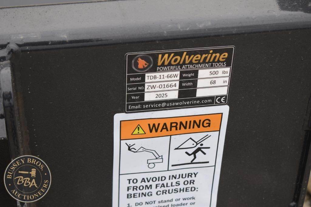 Wolverine Skid Steer Bucket Attachment Skid Steer Mount, smooth bucket, 66in, TDB-11-66W, SN#ZW-01664, NEW/UNUSED