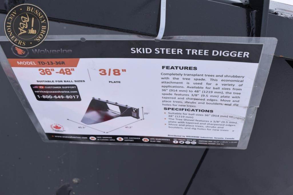 Wolverine Stump Bucket Attachment skid steer mount, SN#ZW01099, NEW/UNUSED