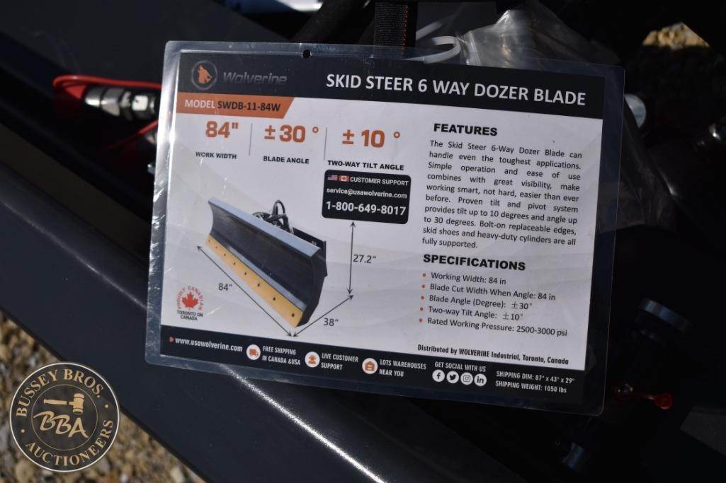 Wolverine SWDB-11-84W Skid Steer 6-Way Dozer Blade , 84" Width, 2025 Model Serial Number: ZV-00647.