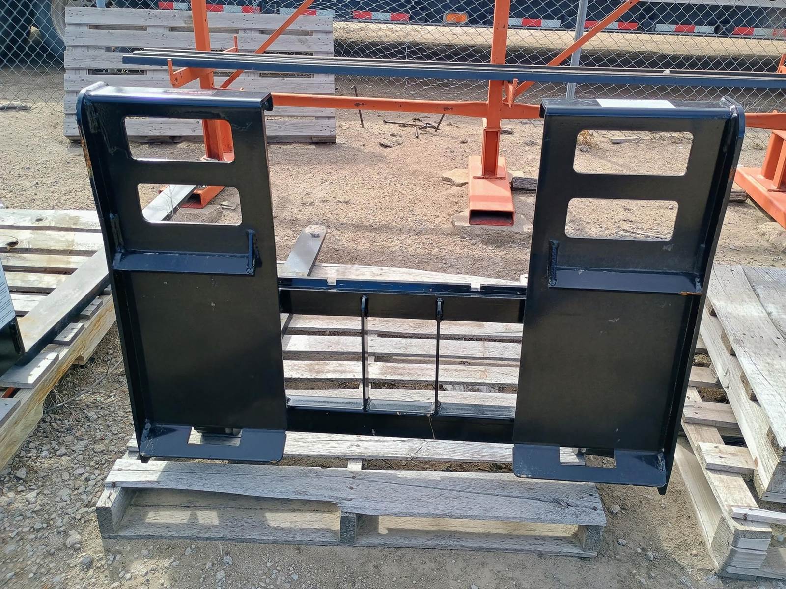 WORKSAVER SSPF-448 PALLET FORK SET, SKID STEER MOUNT, STEP THROUGH BACKSTOP, RAIL STYLE, 4000# RATED, 1.375" X 4" X 48" FORKS. $1,295.00